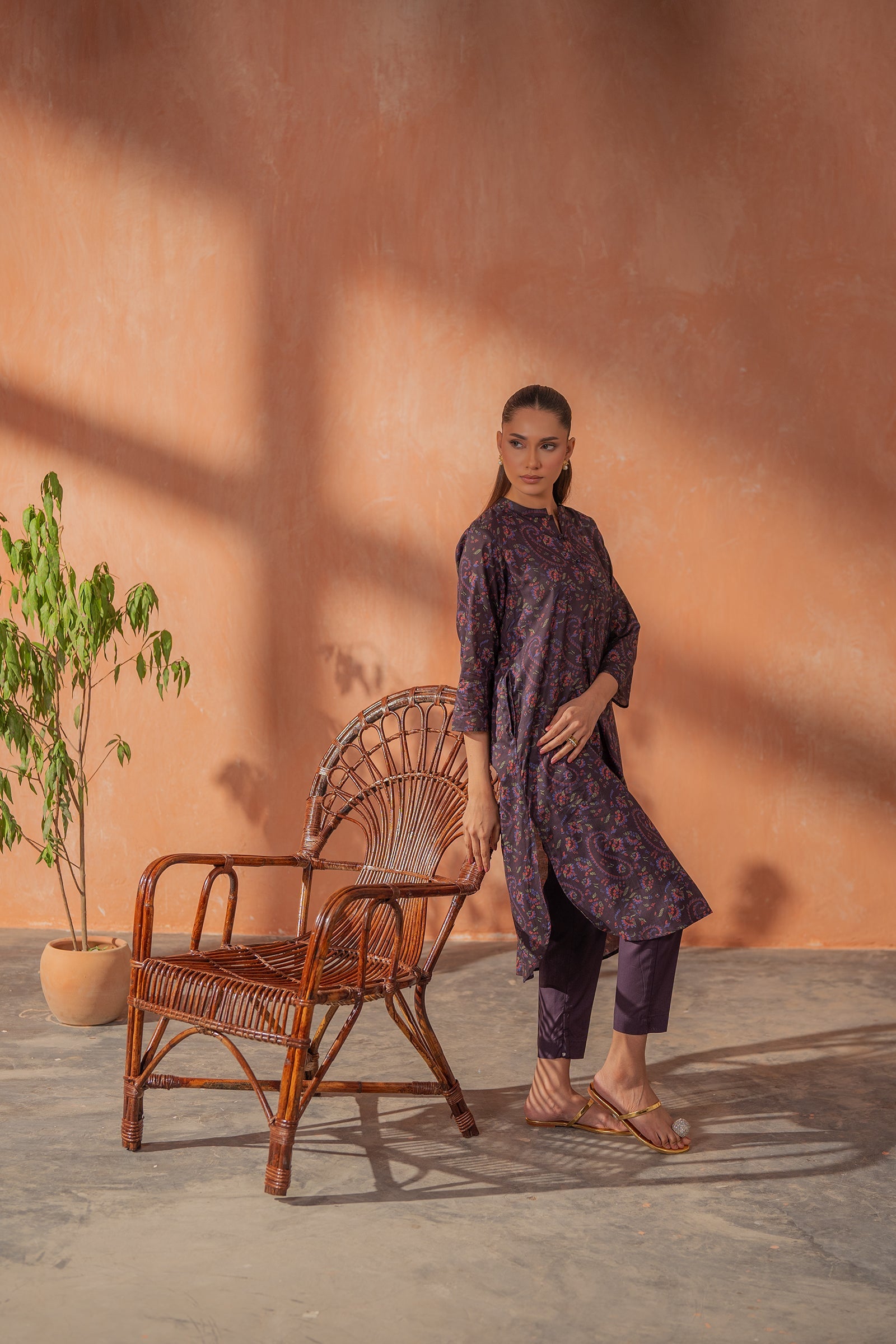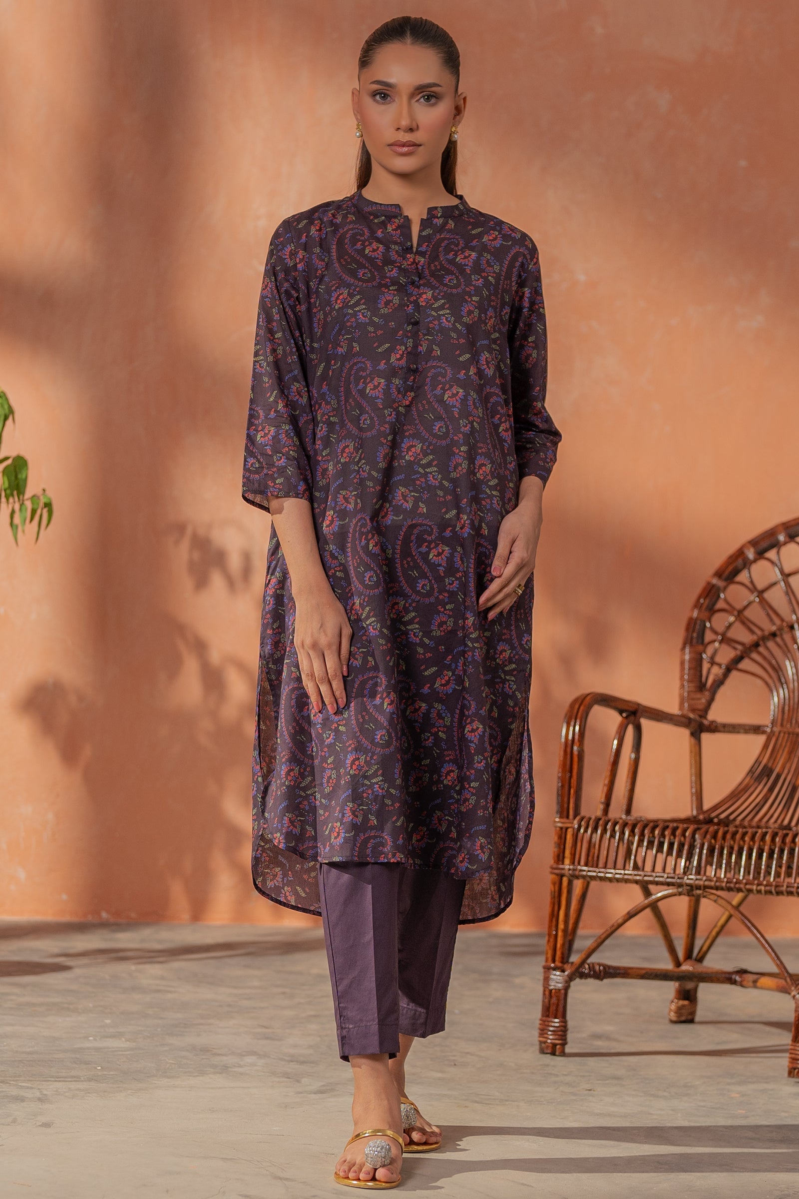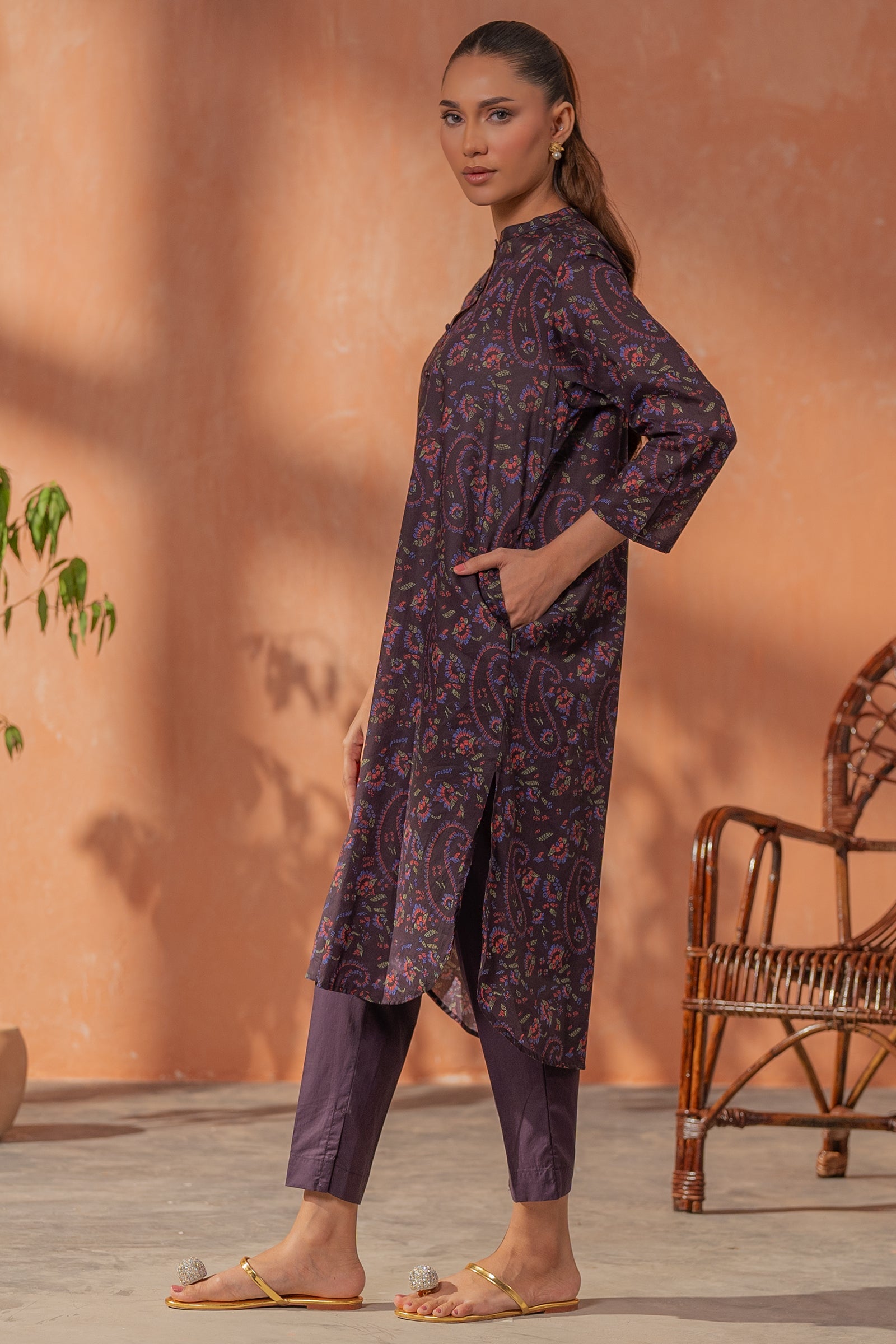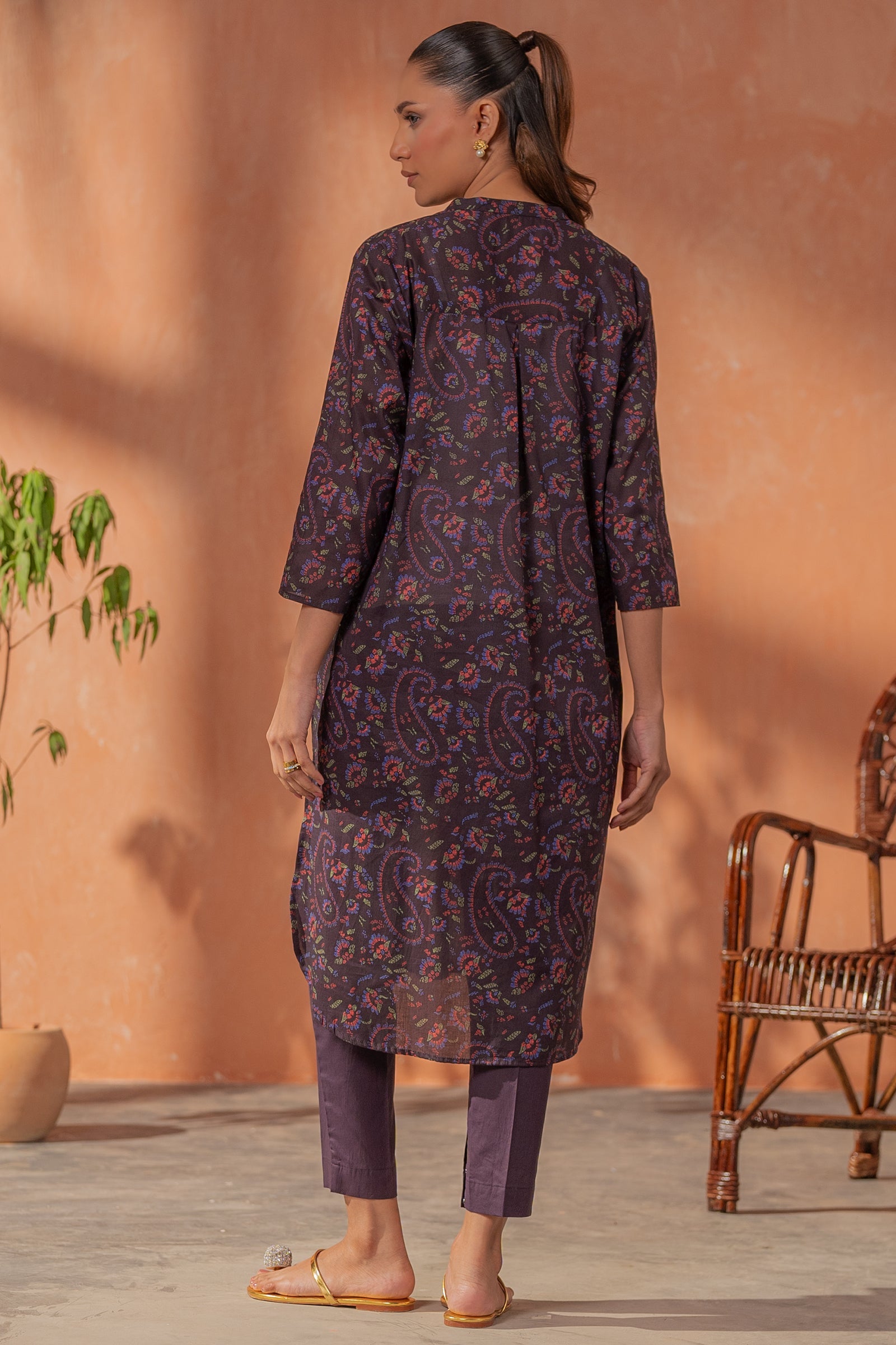 This deep purple kurta and pants with subtle prints is perfect for everyday wear and modern comfort.