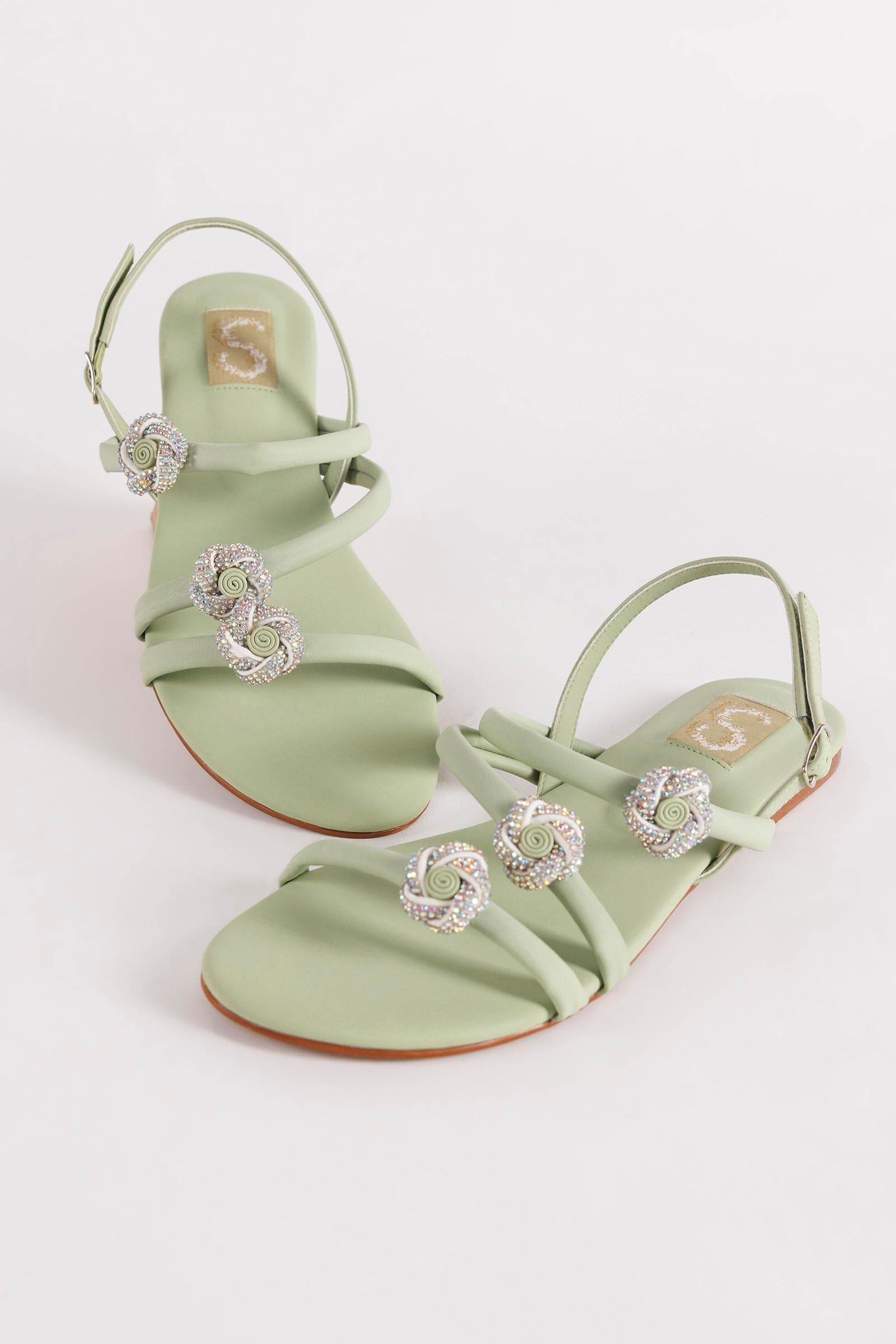 Baby Pink Crystal Strap Flats