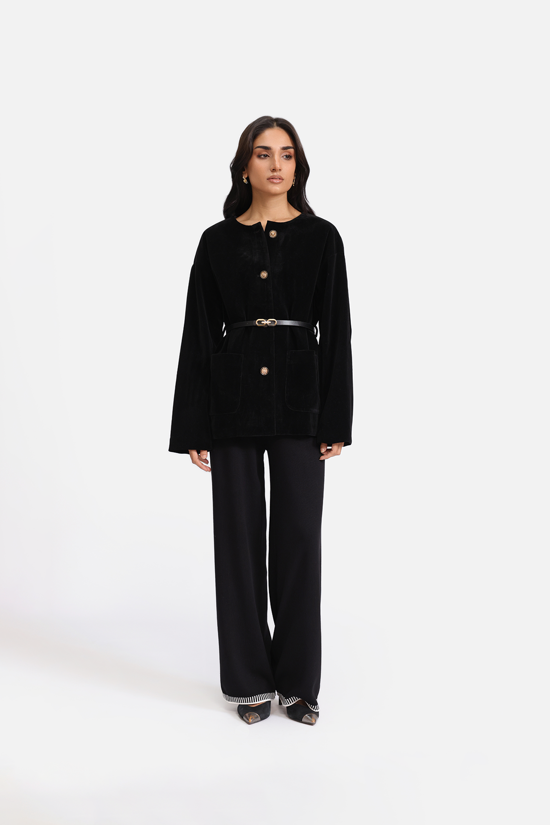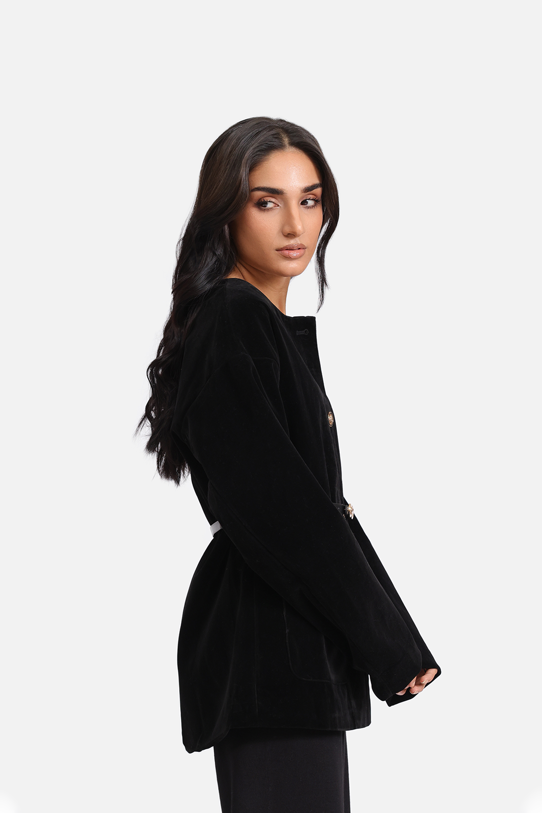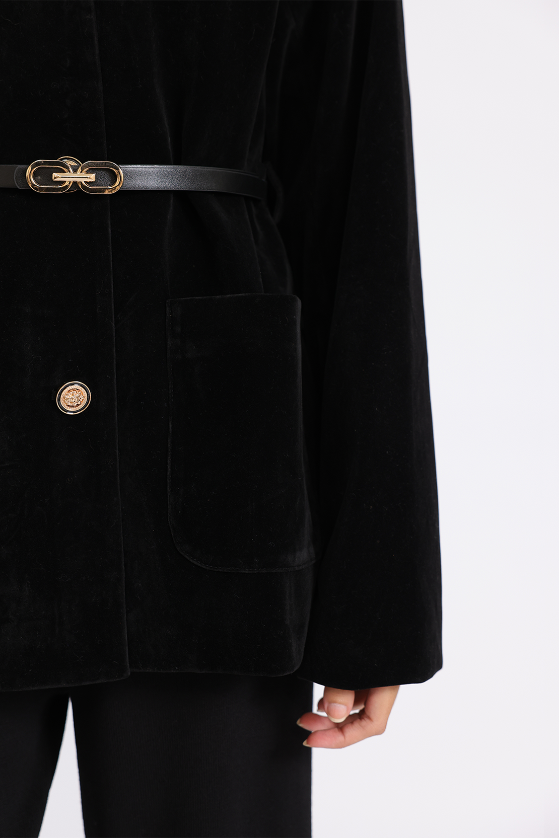 Experience understated luxury with this velvet coat, engineered from premium pile fabric that combines visual richness with exceptional comfort. The material's natural sheen creates an elegant interplay of light and shadow, elevating any outfit with sophisticated dimension. Velvet's superior insulating qualities provide genuine warmth while maintaining a lightweight structure ideal for layering. The fabric demonstrates remarkable durability, resisting wear patterns while preserving its distinctive texture over time. Whether styled for formal events or refined casual occasions, this coat serves as a versatile foundation piece. Its timeless aesthetic and tactile appeal establish it as a distinguished wardrobe essential that transcends seasonal fluctuations.