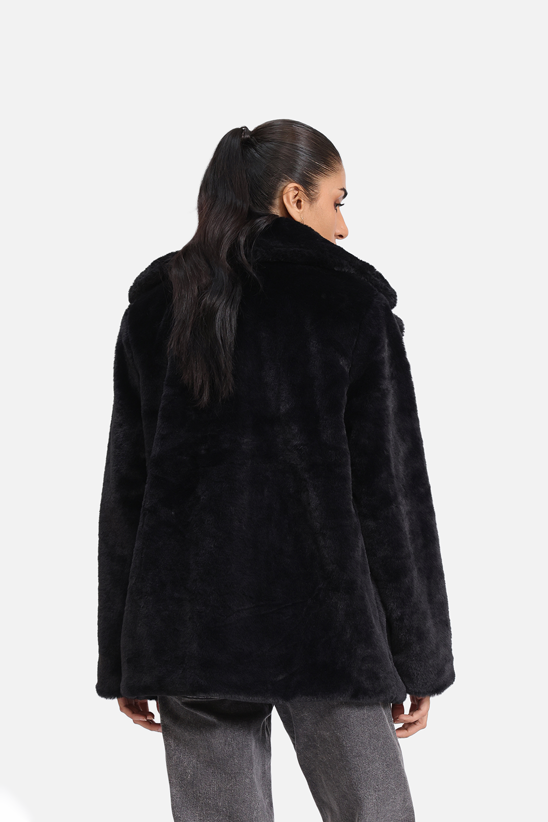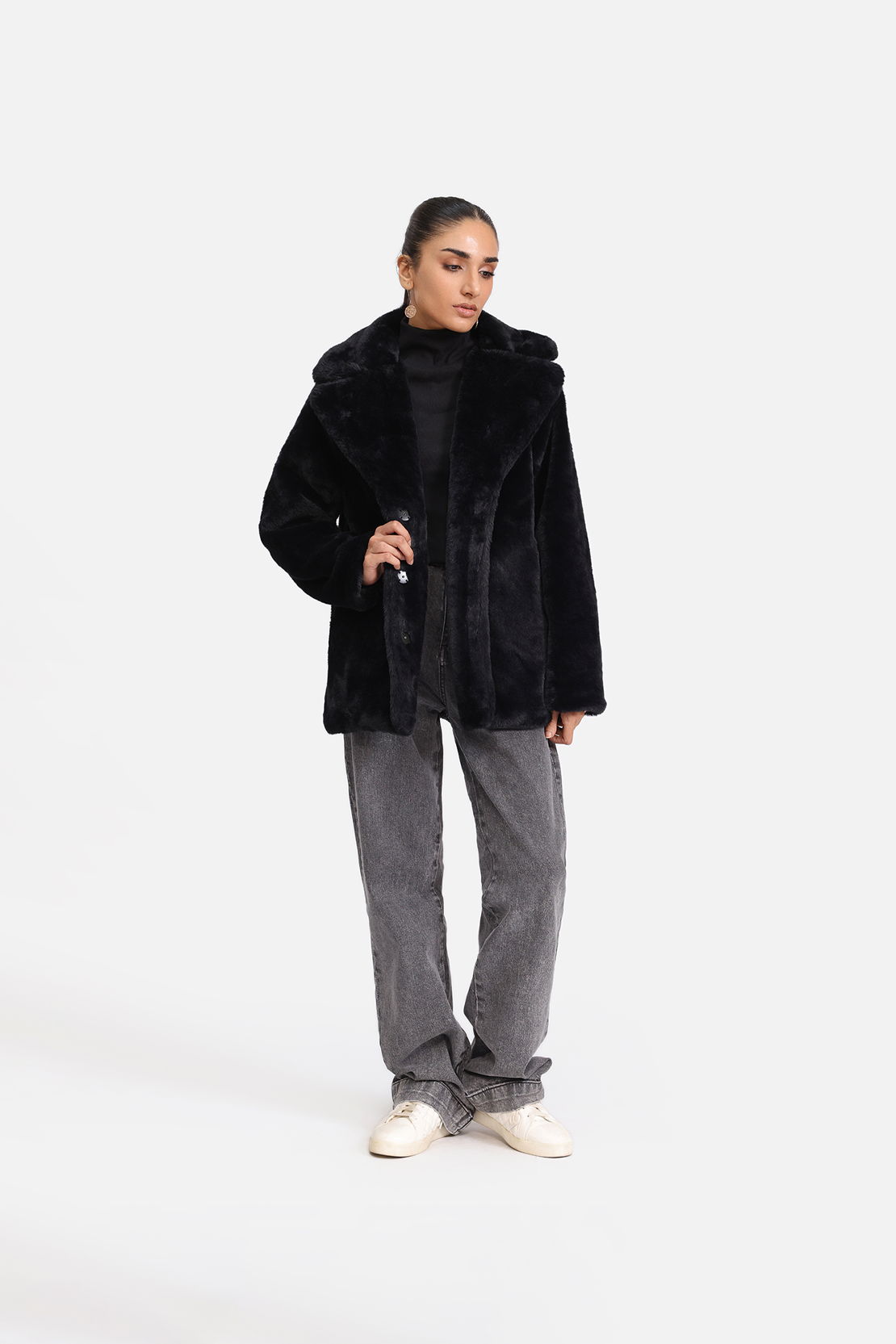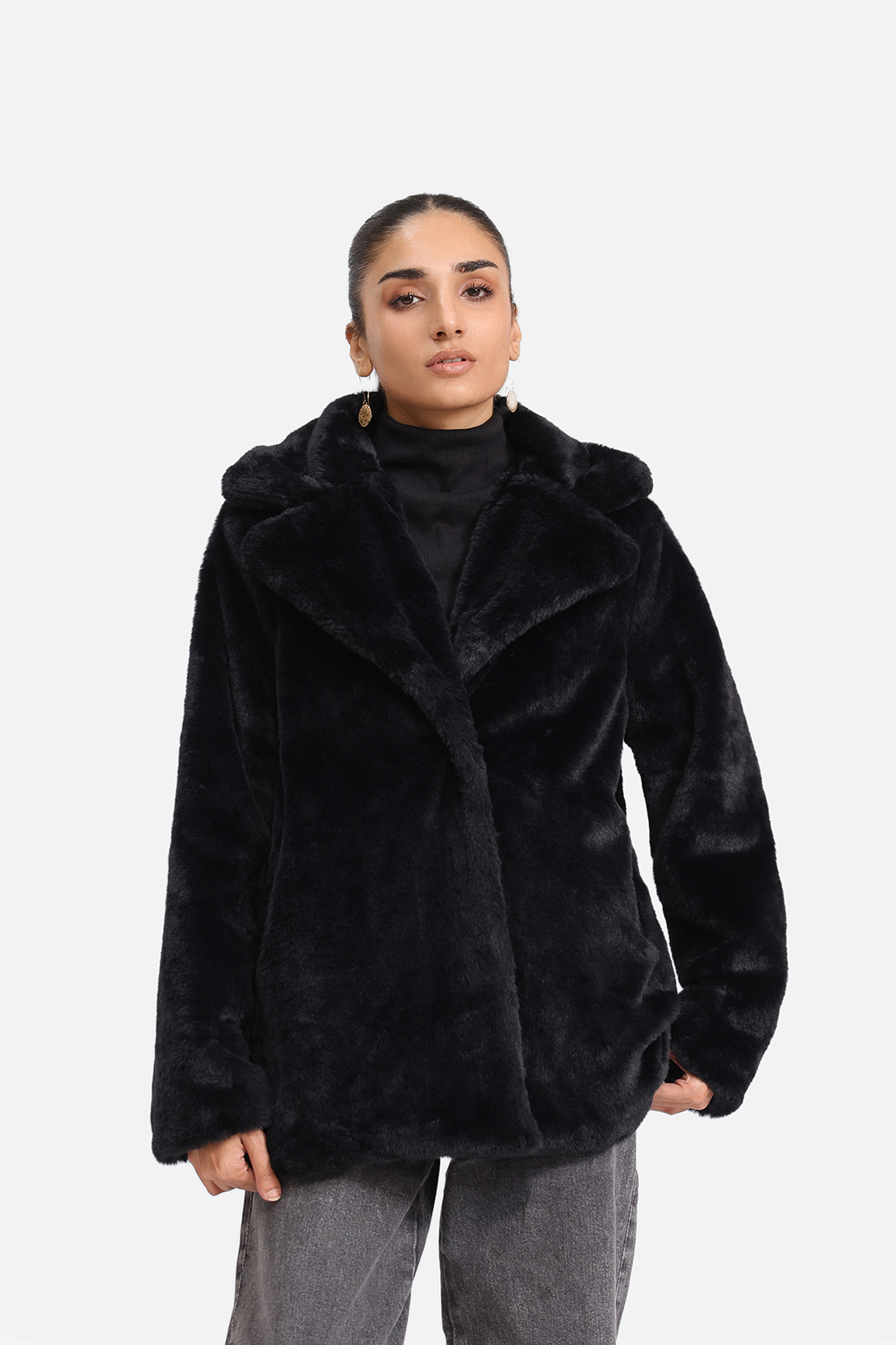 A luxurious fur coat designed with an oversized collar and a relaxed silhouette. Soft, warm, and plush to the touch, it offers effortless style and comfort. Perfect for elevating winter looks with a bold, cozy finish.