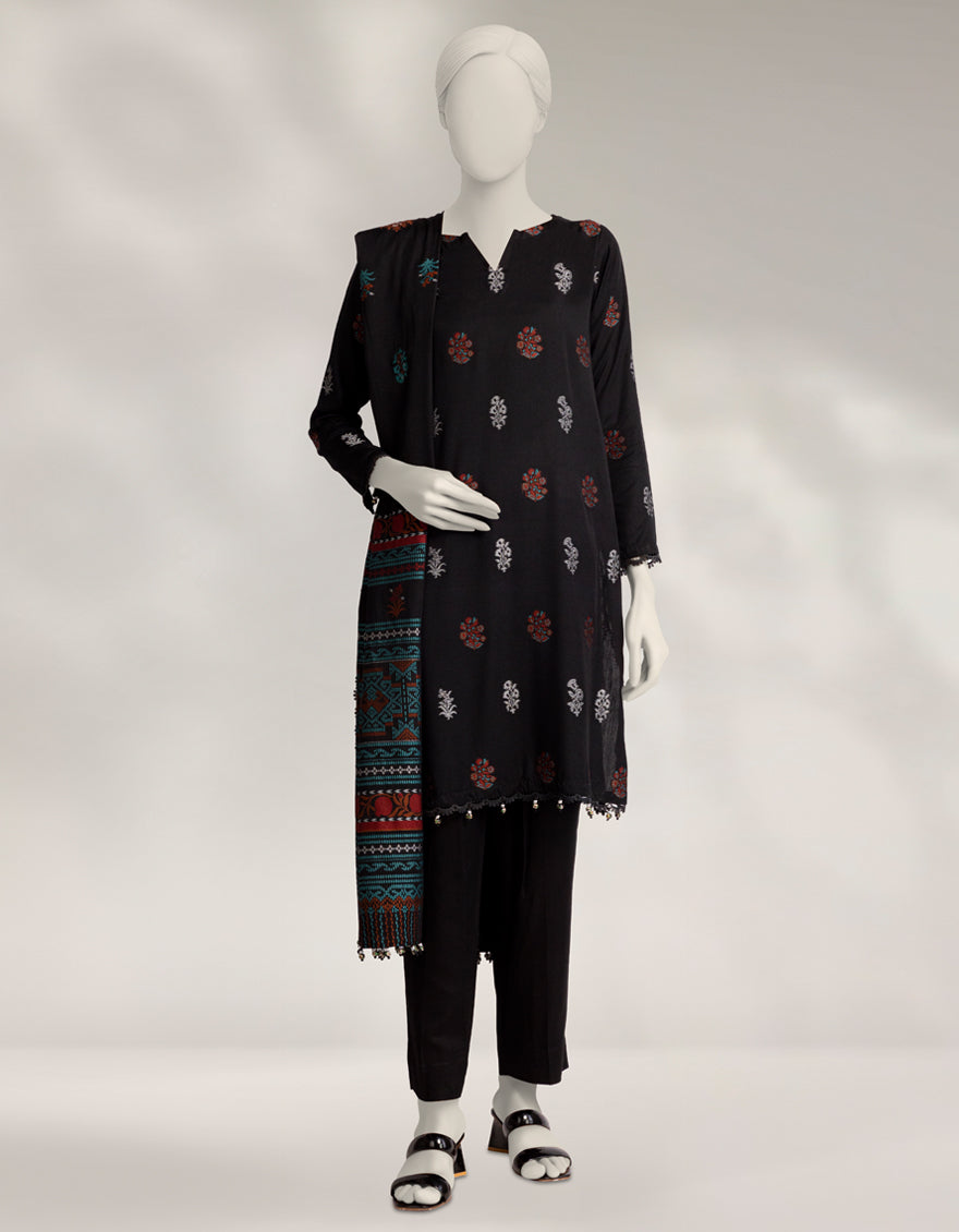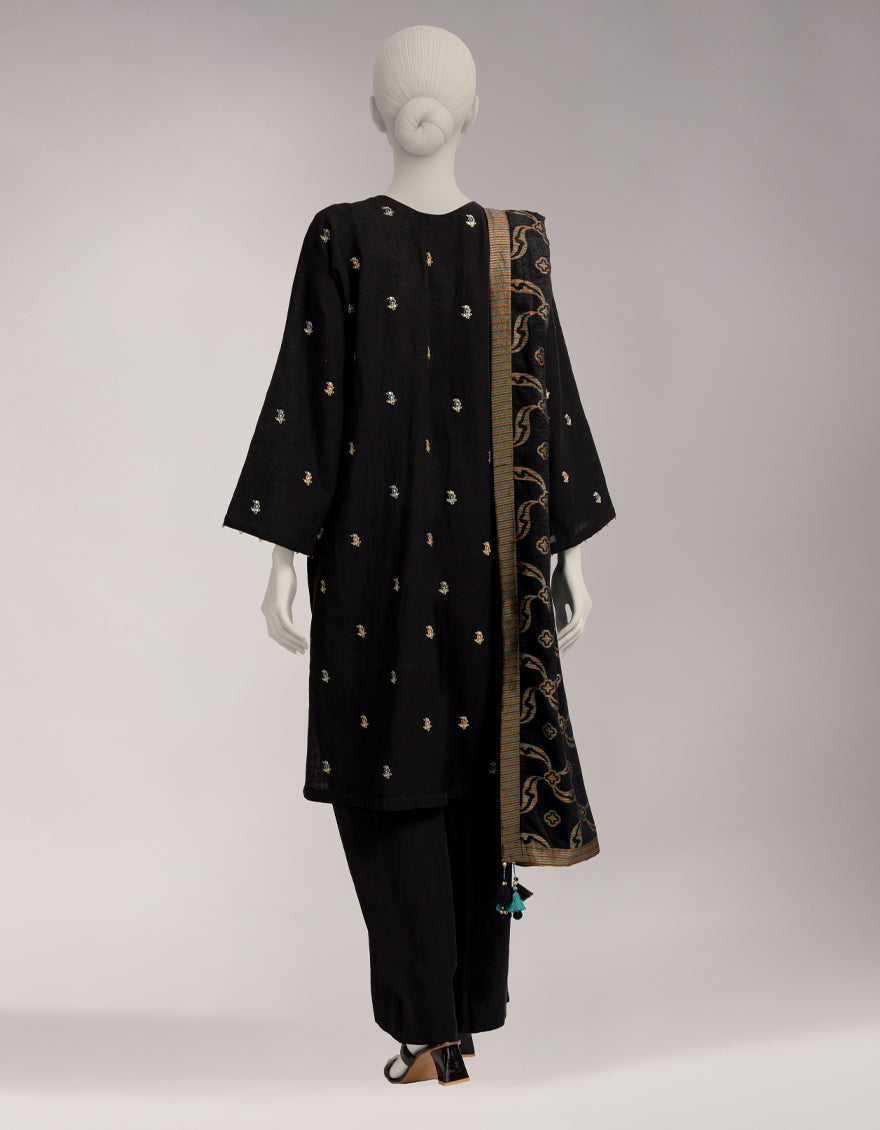 Black Khaddar Embroidered Unstitched 3Pc