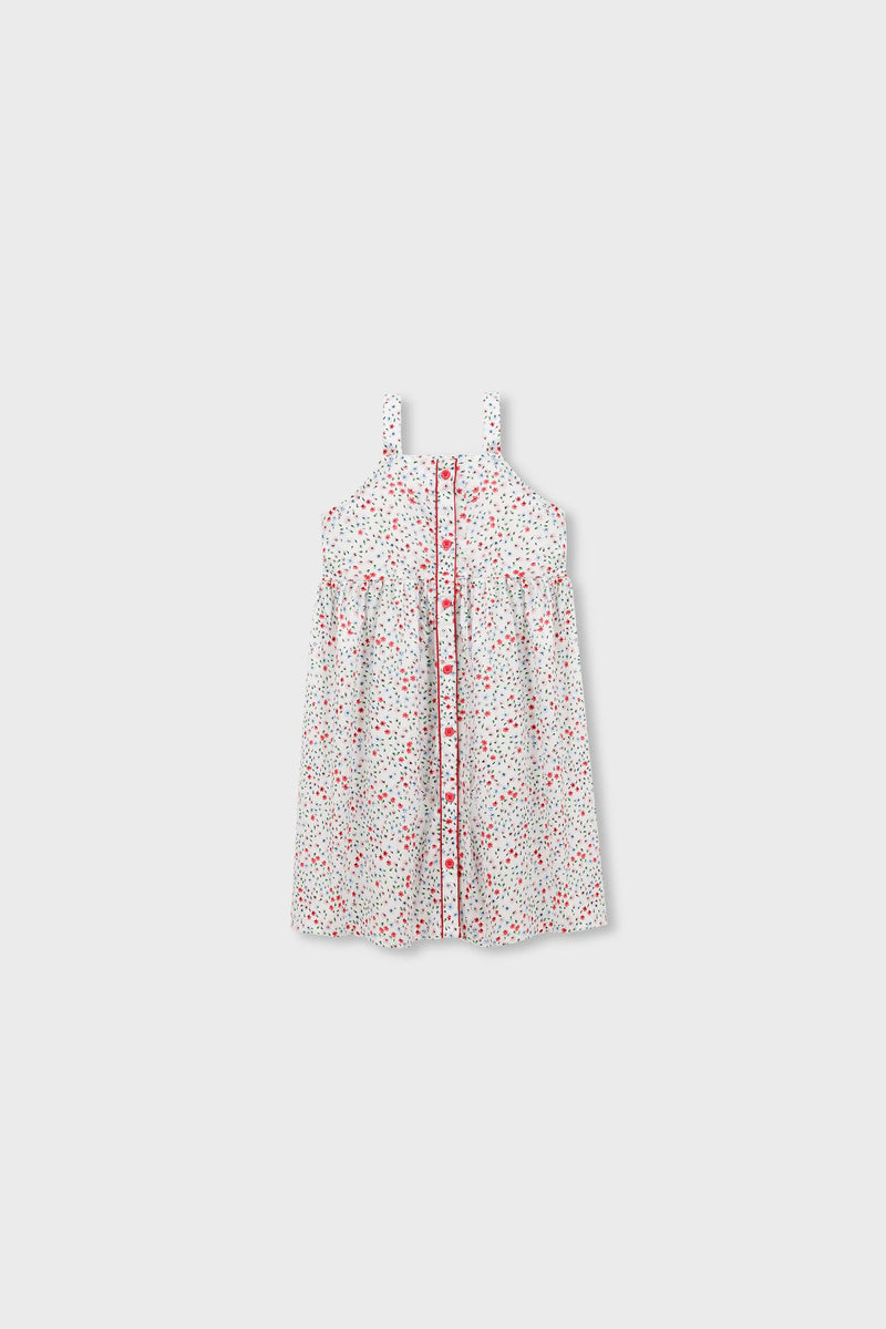 This adorable dress is perfect for sunny days. With a charming floral print, square neck design, and a button-down front, itâÂÂs a stylish choice for your little one. The straps add a comfortable touch, making it an easy-to-wear piece for garden parties, picnics, and playdates.