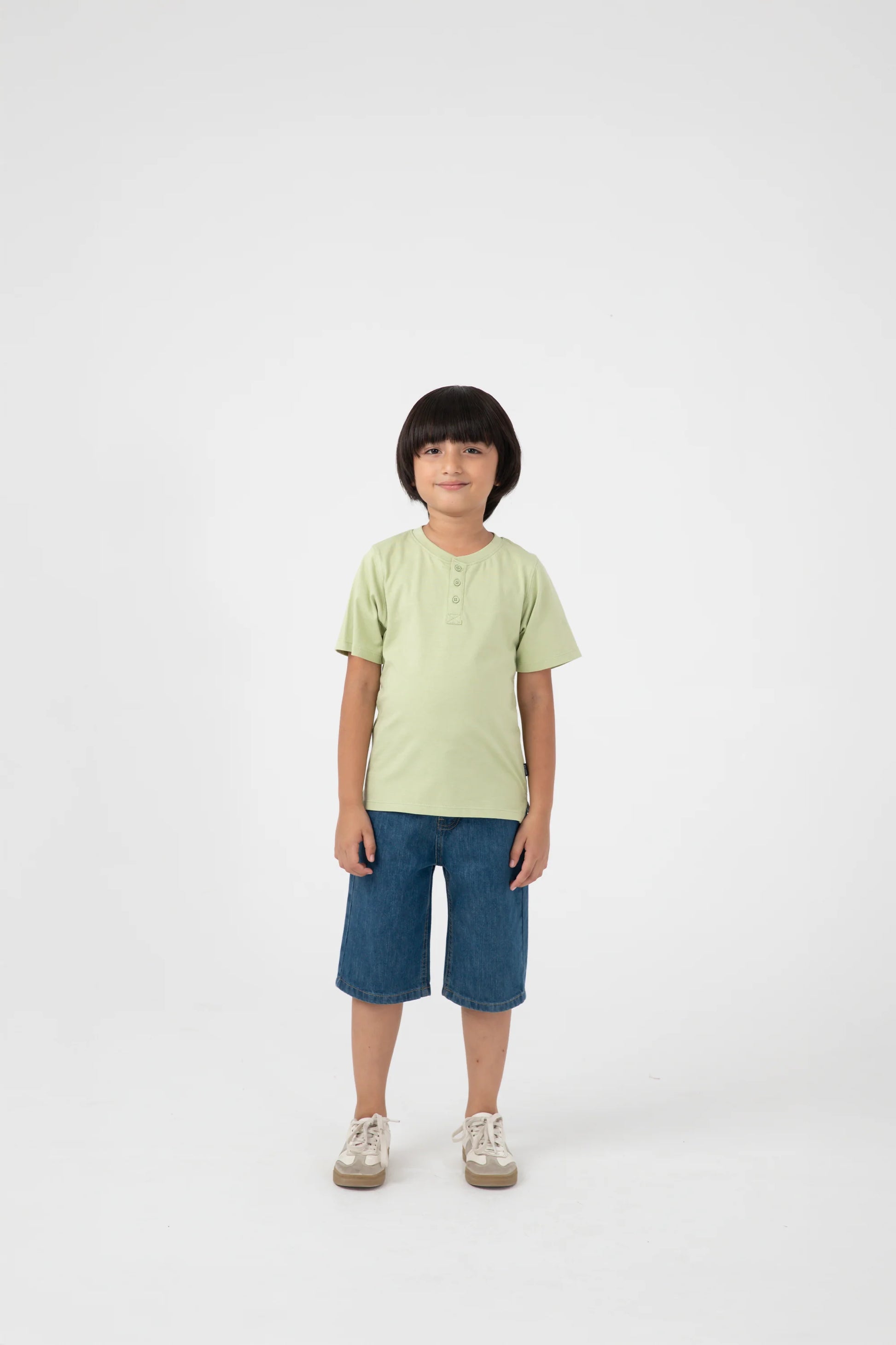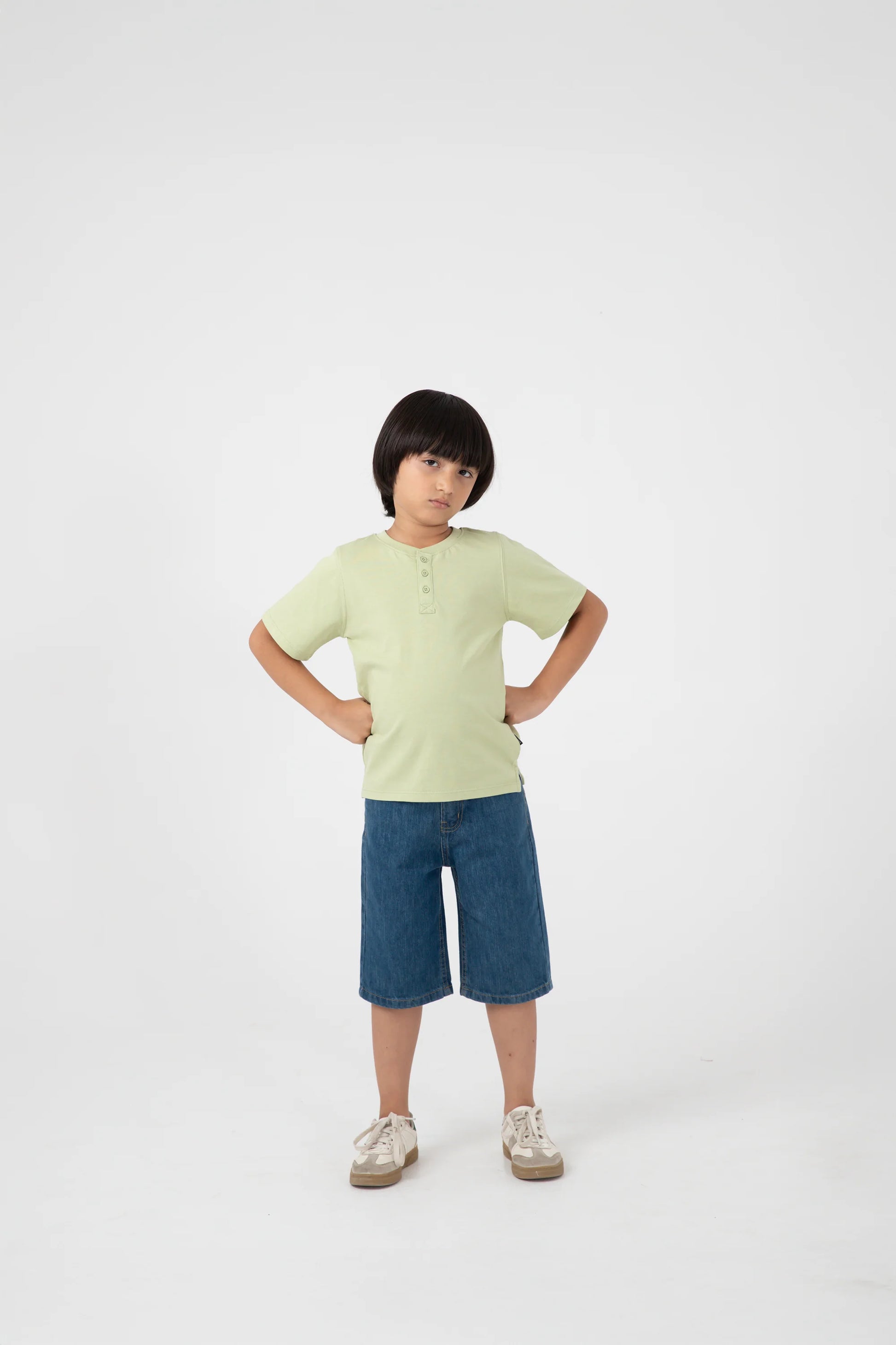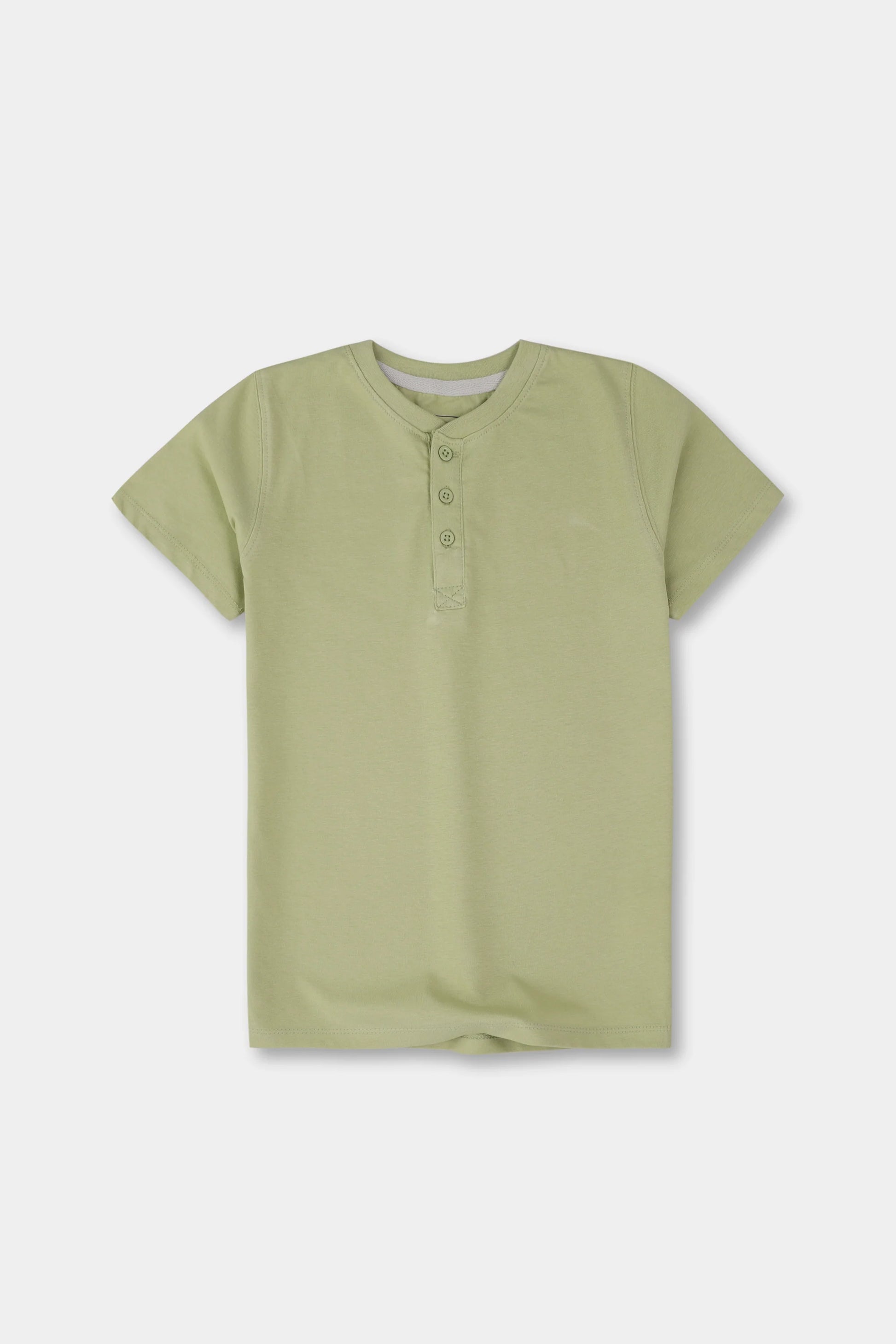 Keep it fresh with the sage henley tee. This soft jersey Henley features a soothing pista green shade, short sleeves, and a neat two-button placket at the neckline. Its relaxed fit and breathable fabric make it ideal for everyday wear, offering both comfort and effortless style.