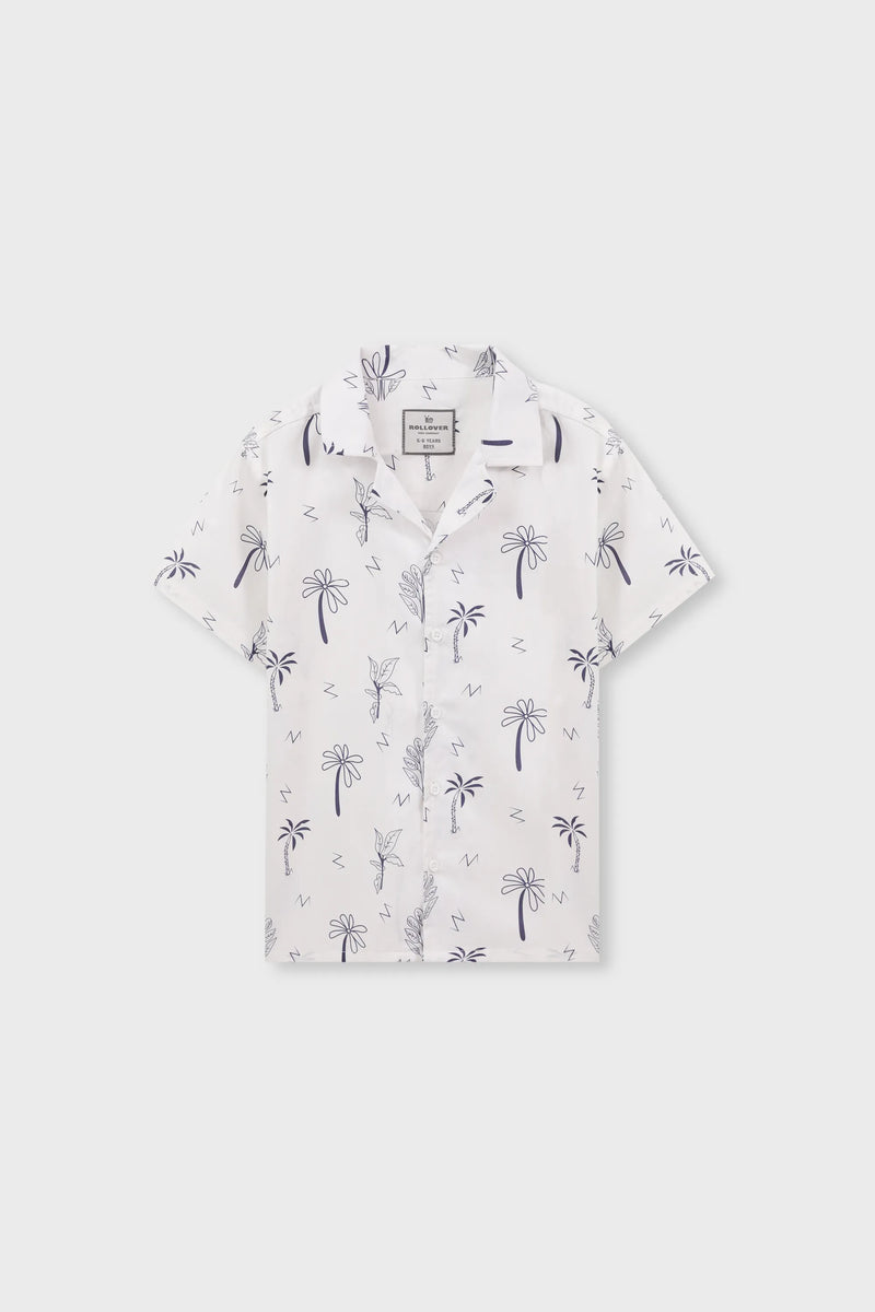 White Tropical Print Cotton Shirt