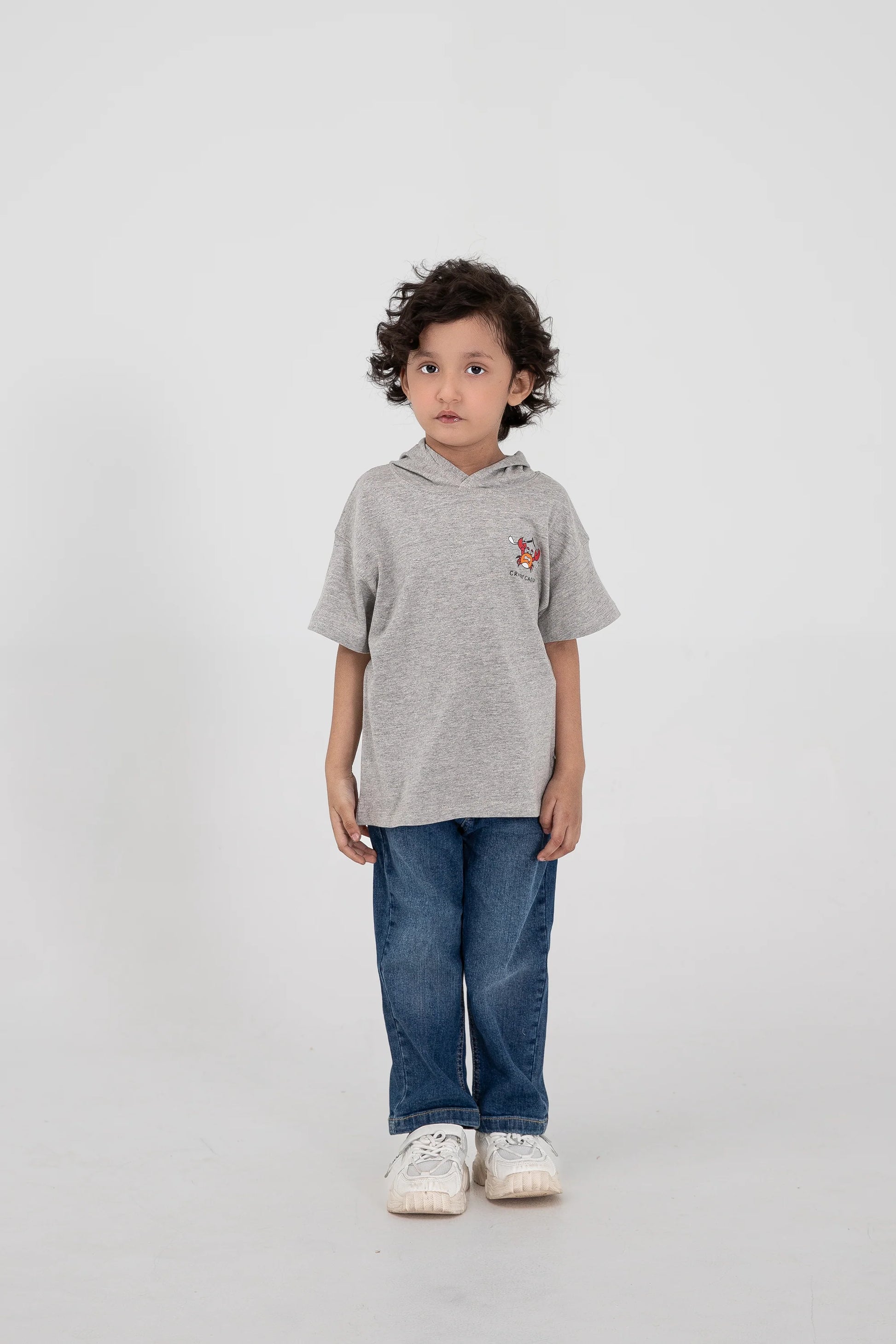 Whether he's on the move or just kicking back, this grey hooded t-shirt ensures maximum comfort and style. The jersey knit fabric provides a soft, breathable fit, while the attached hood adds an urban-inspired edge. Perfect for pairing with jeans or joggers for a cool, laid-back look.