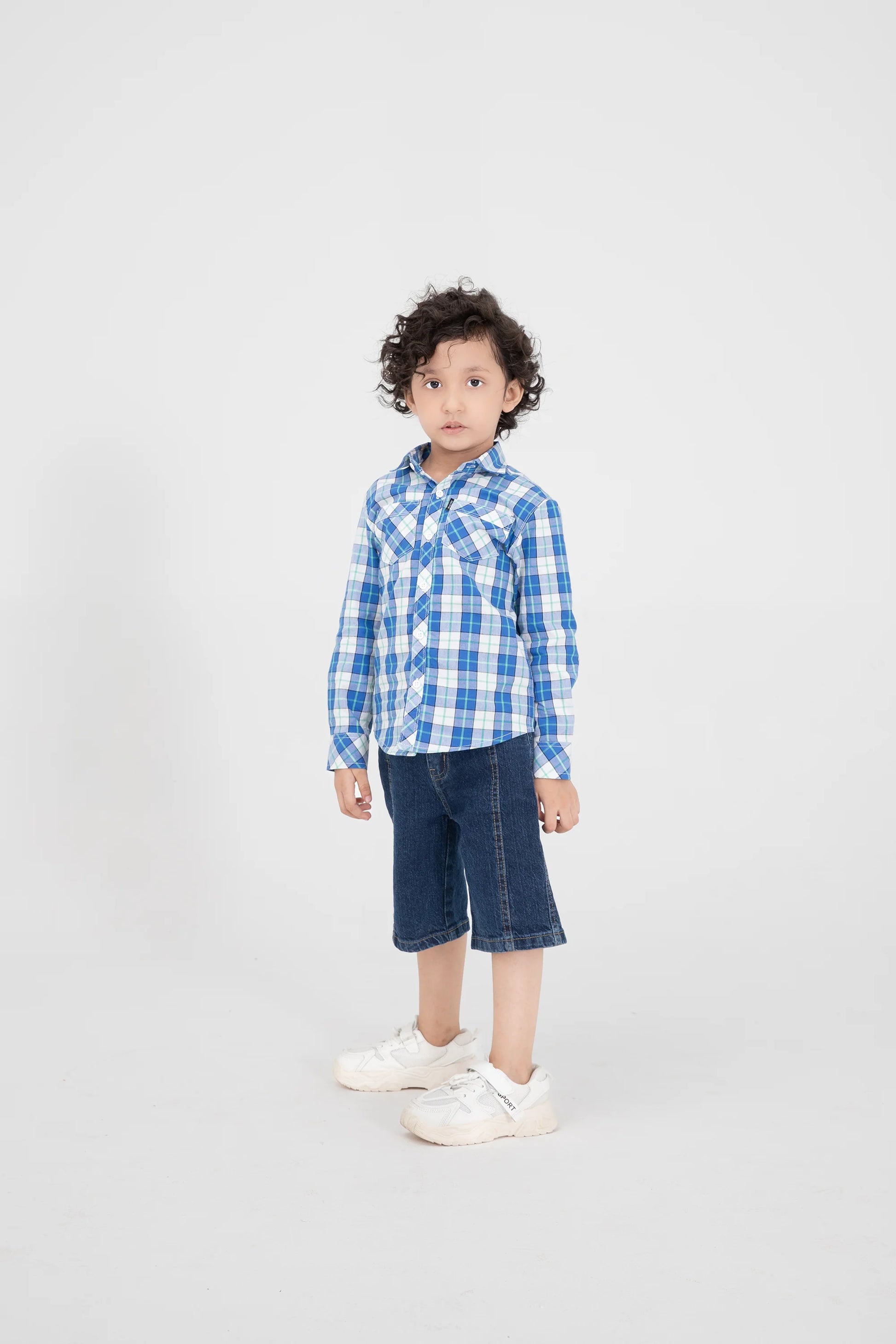 A timeless choice for young trendsetters, this royal blue check shirt features crisp button-down styling, chest flap pockets, and neat cuffs. Crafted from breathable cotton, it promises all-day comfort and versatile wearâÂÂperfect for casual days, family gatherings, or school functions. Classic pattern with a modern edge.