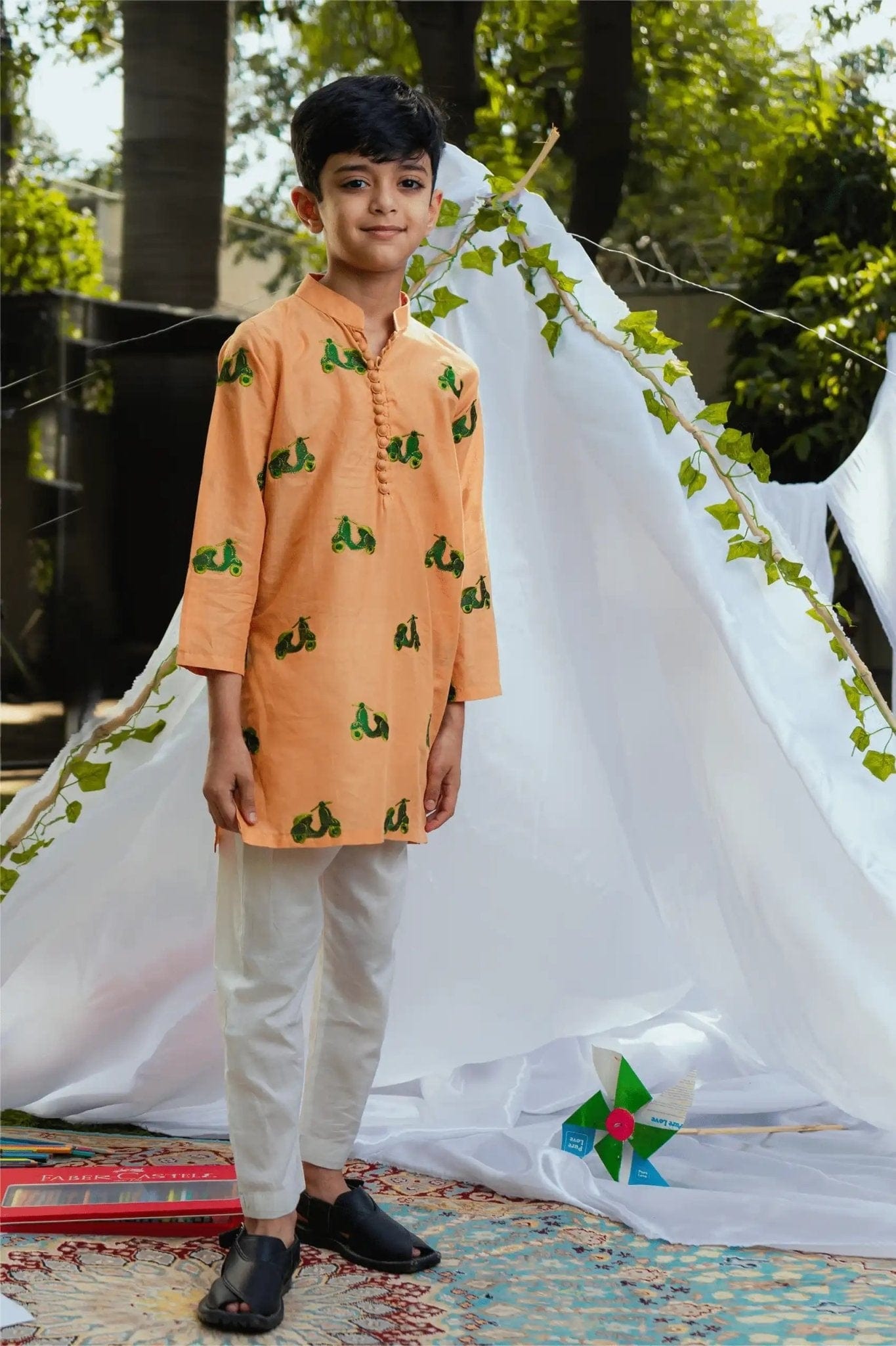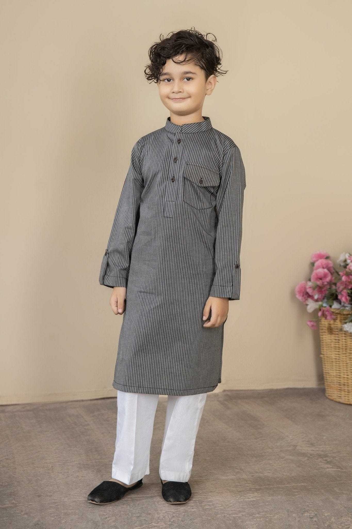 Boys Navy Blue Cotton Jacquard Kurta Set