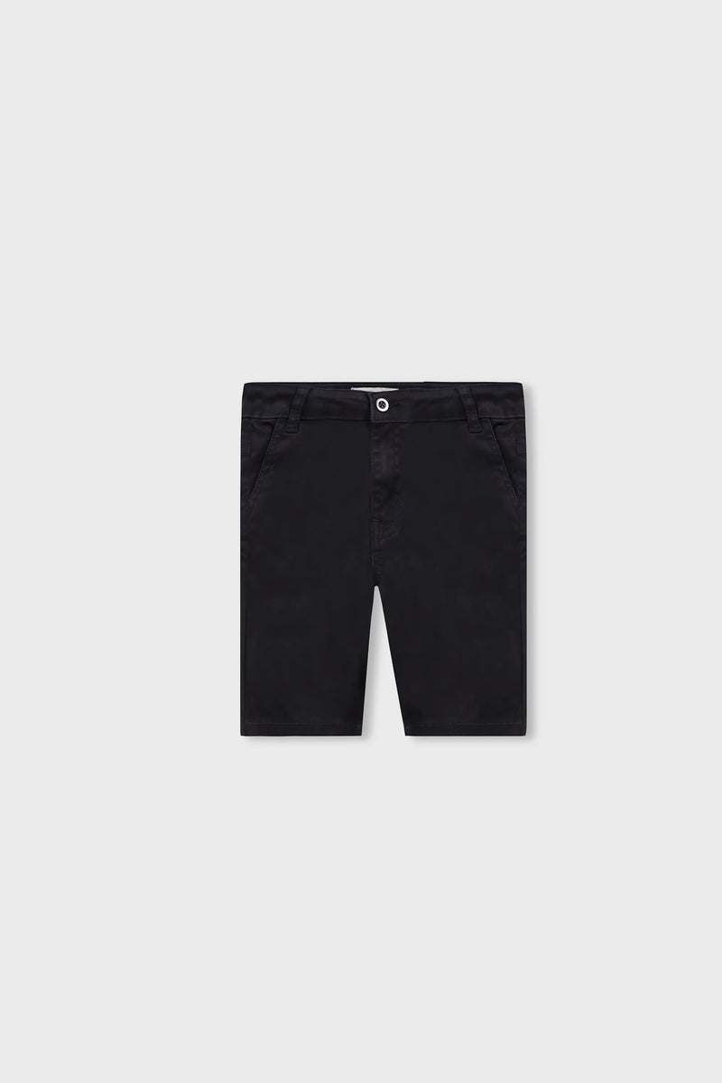 These black knee-length shorts bring comfort and durability with high-quality twill fabric. Featuring a matching plastic button, cross pockets, and a fly with bar tacks, they offer a sleek and stylish look. Ideal for school or play, these shorts combine practicality with style for every active boy.
