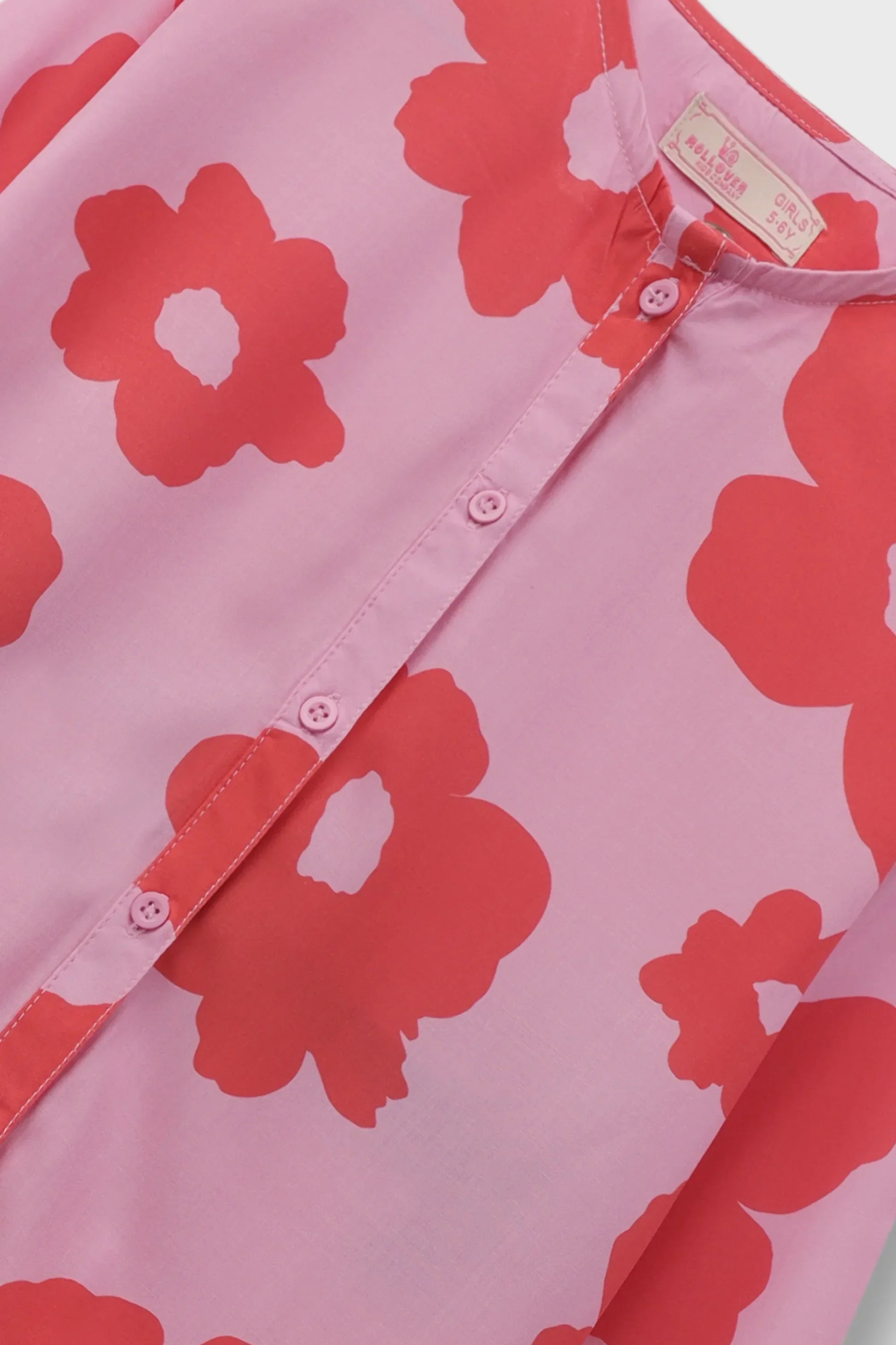 This adorable girlsâ co-ord set is made from soft, breathable cotton in a bright pink color with bold red floral prints. The set includes a button-down top with full sleeves and a matching wide-leg trouser featuring an easy elastic waist. Perfect for everyday comfort, outings, and playful summer days.