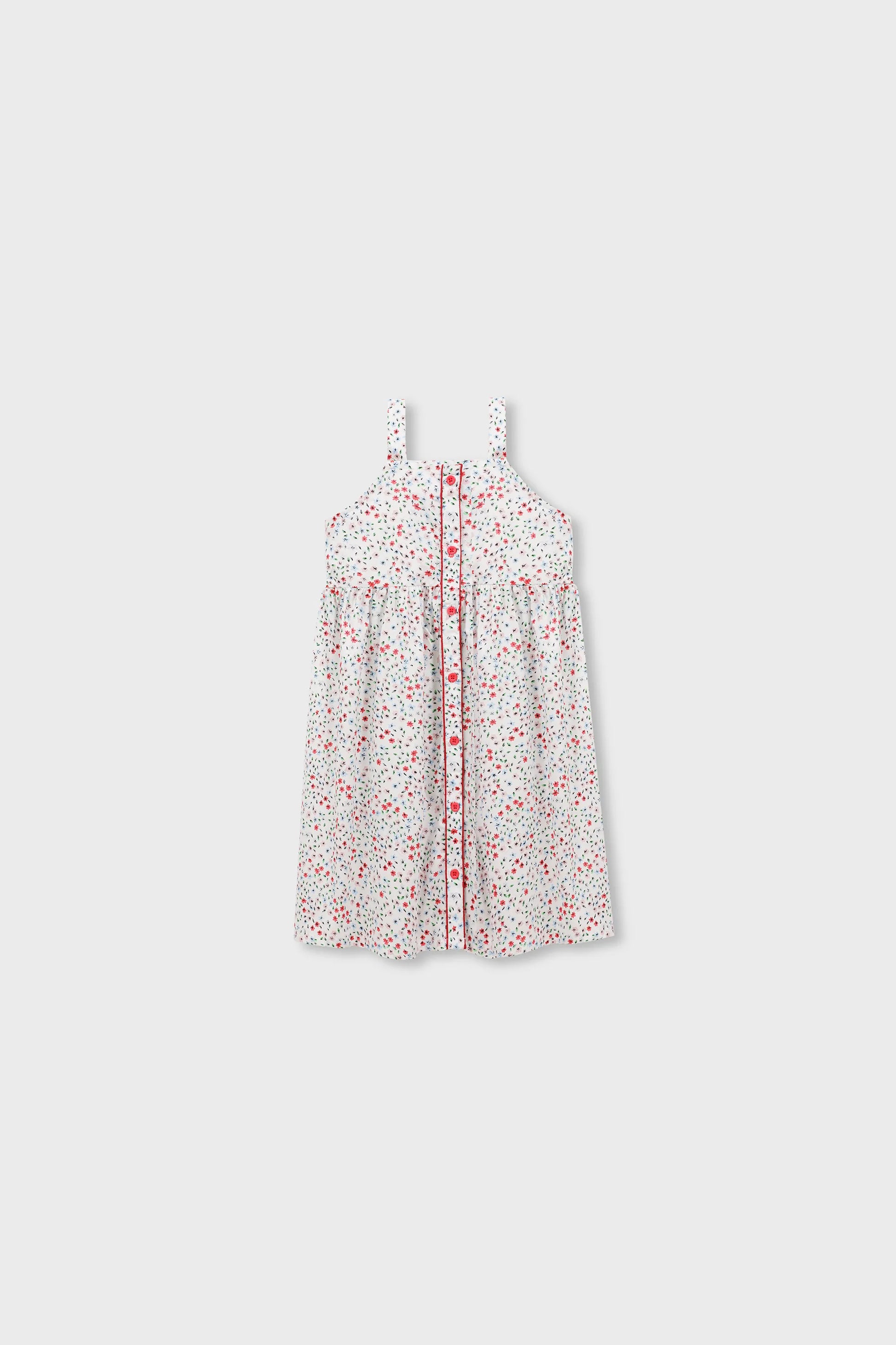 This adorable dress is perfect for sunny days. With a charming floral print, square neck design, and a button-down front, itâÂÂs a stylish choice for your little one. The straps add a comfortable touch, making it an easy-to-wear piece for garden parties, picnics, and playdates.