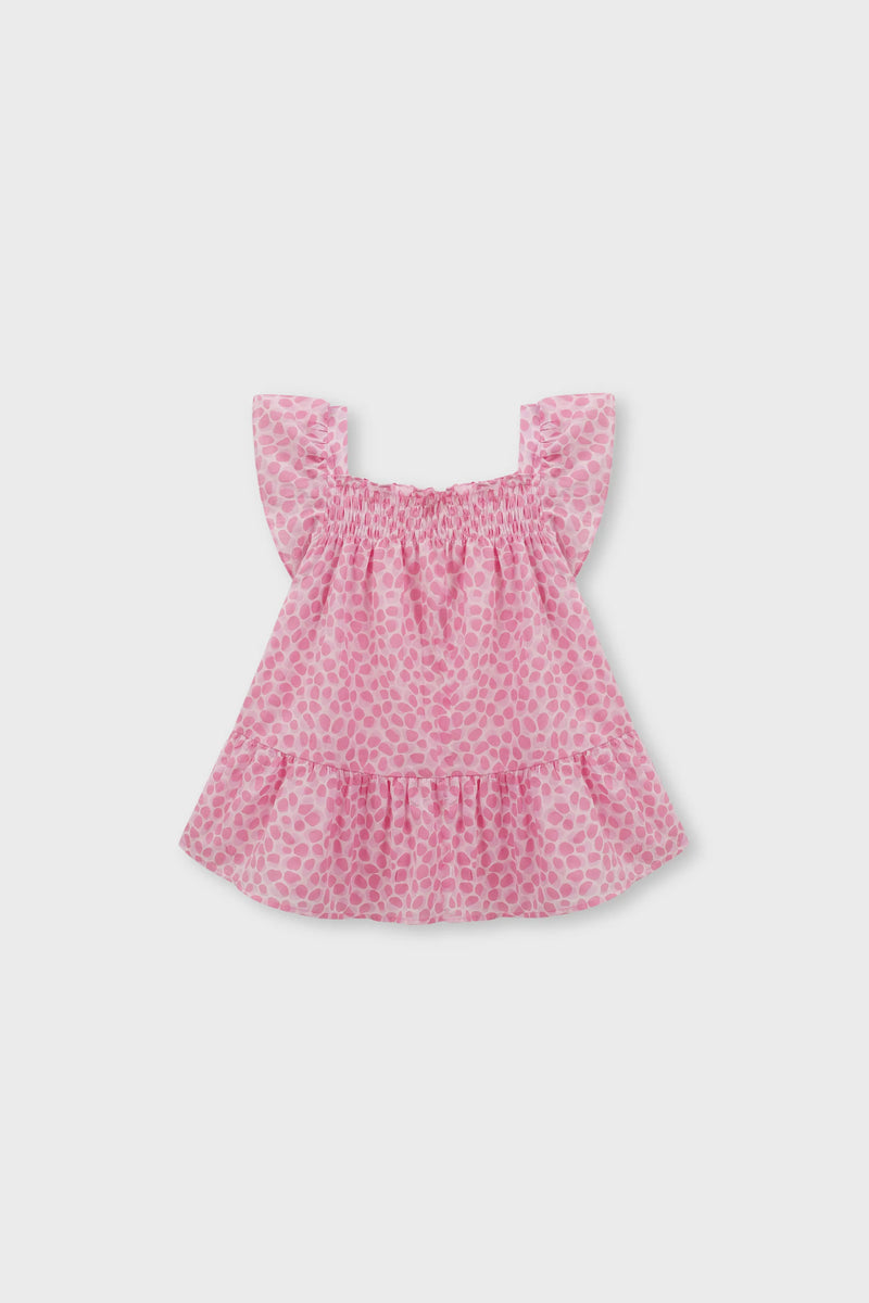 Let her live in a dream with this pink cotton top. Featuring a long body and adorable polka dot design, itâÂÂs perfect for those breezy days. The soft fabric feels gentle on the skin while keeping her stylishly comfortable. A must-have for every playful day or special outing.