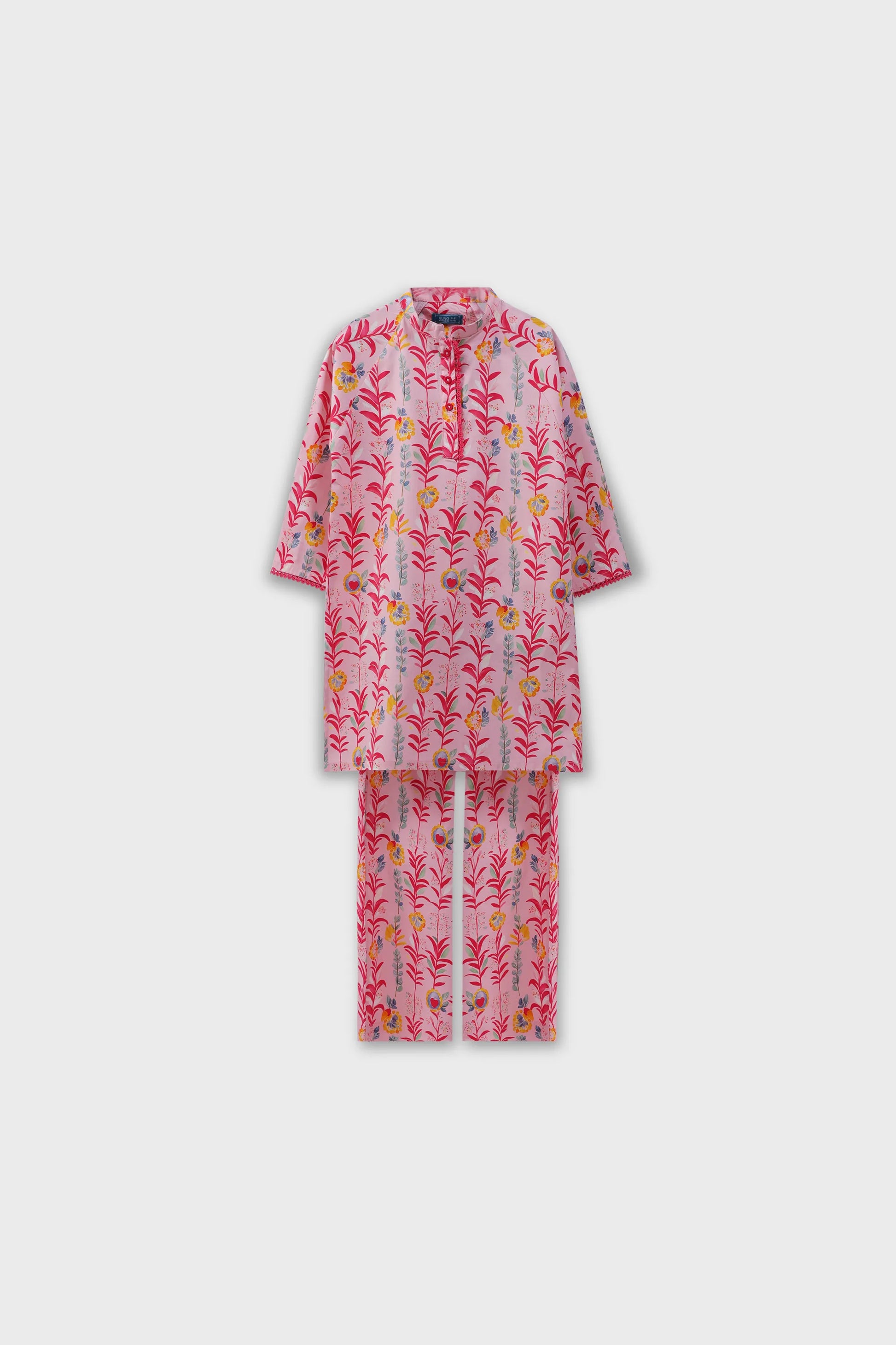 Brighten up winter with this pink printed cotton kurta and trouser set. The lively floral design and warm fabric make it both practical and picture-perfect. Ideal for playdates and outings, it blends comfort with fun-filled seasonal charm.