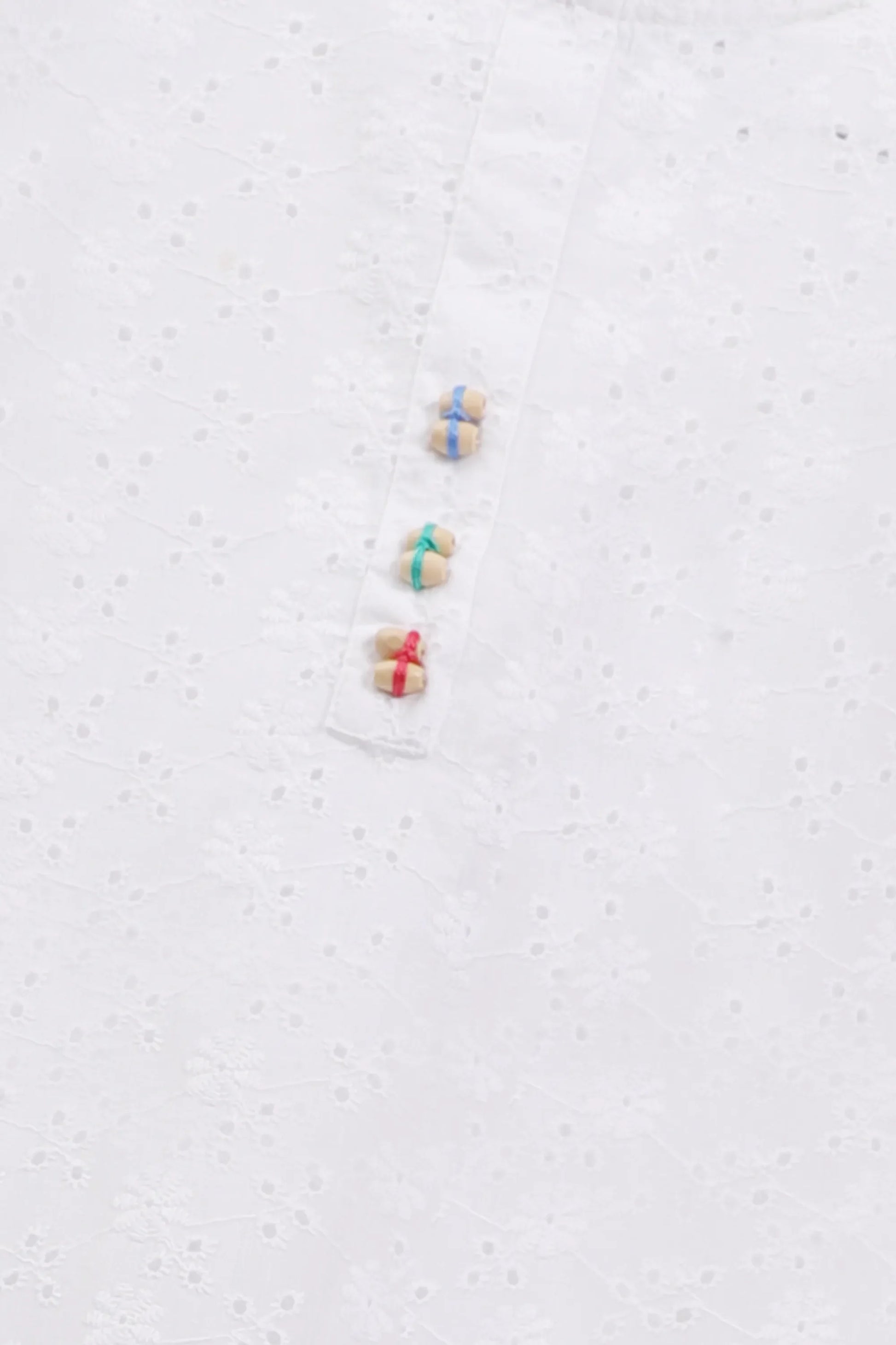 This classic white chickenkari kurta and cotton trouser set brings timeless appeal to your child's wardrobe. The shirt features delicate embroidery, perfect for casual or semi-formal occasions. The soft, comfortable trousers ensure freedom of movement throughout the day. A lovely duo for any season.