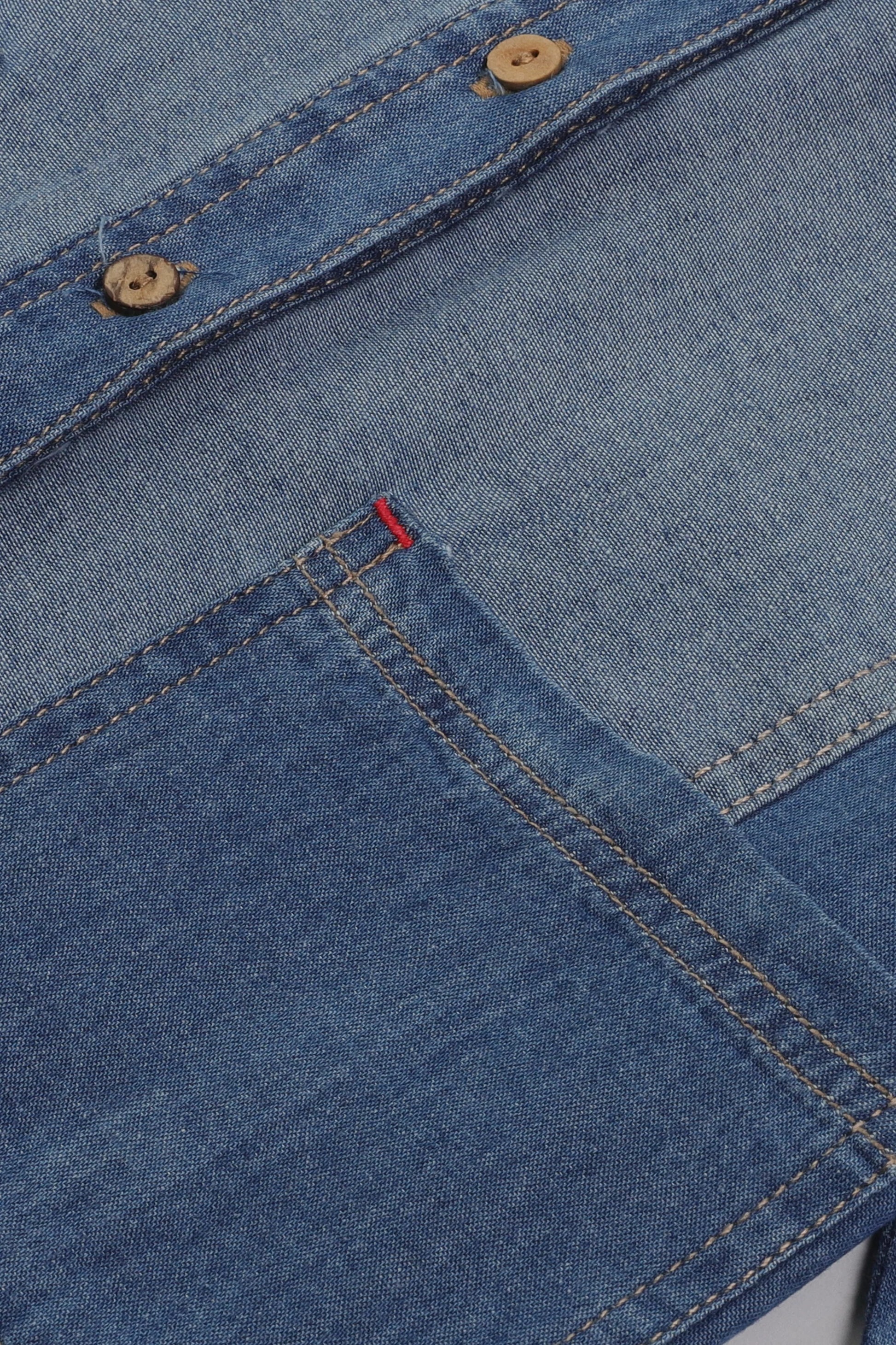Let your girl make a fashion statement with this two-tone blue denim top. Designed with oversized pockets, contrast stitching, and a comfortable fit, this top offers a rugged yet stylish appeal. Wear it buttoned up for a polished look or open over a tee for a cool layered outfit.