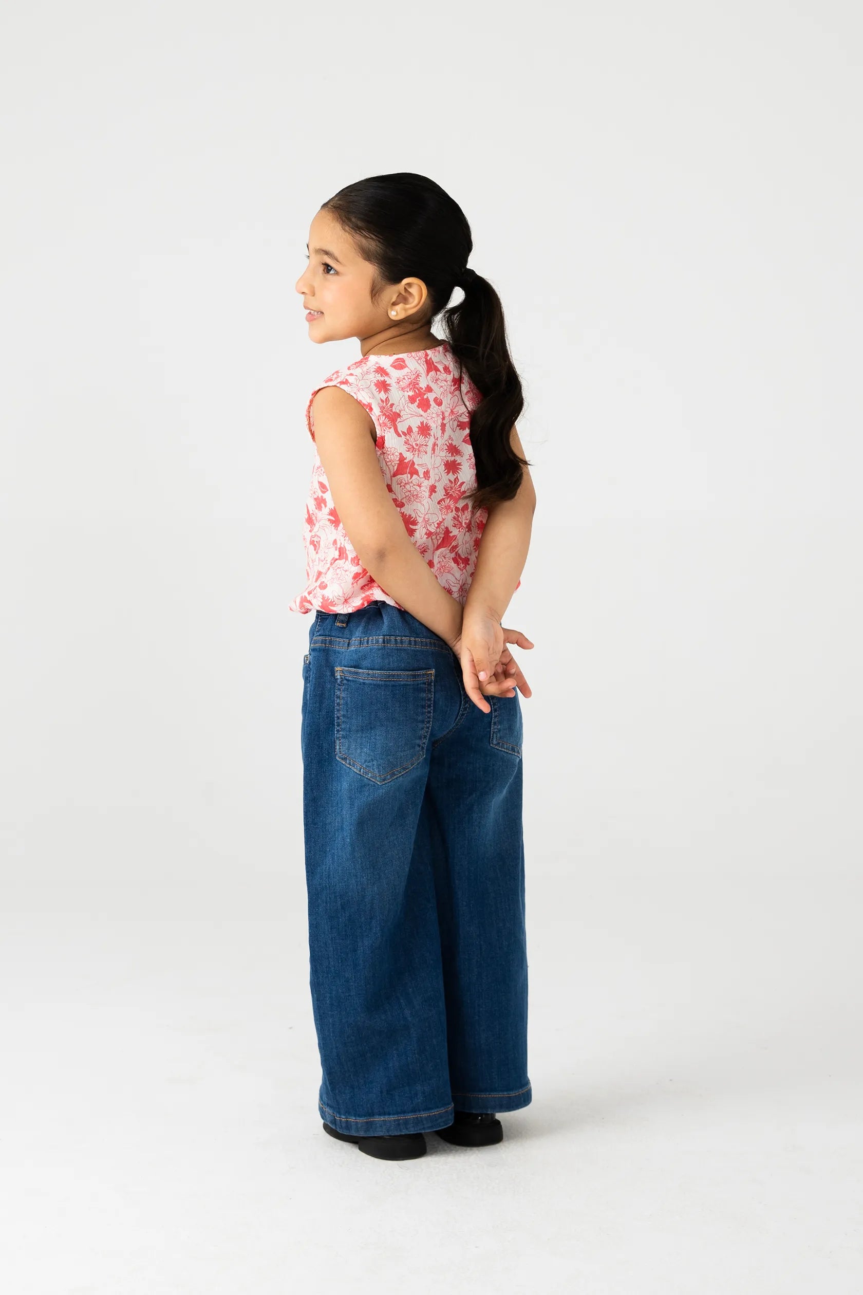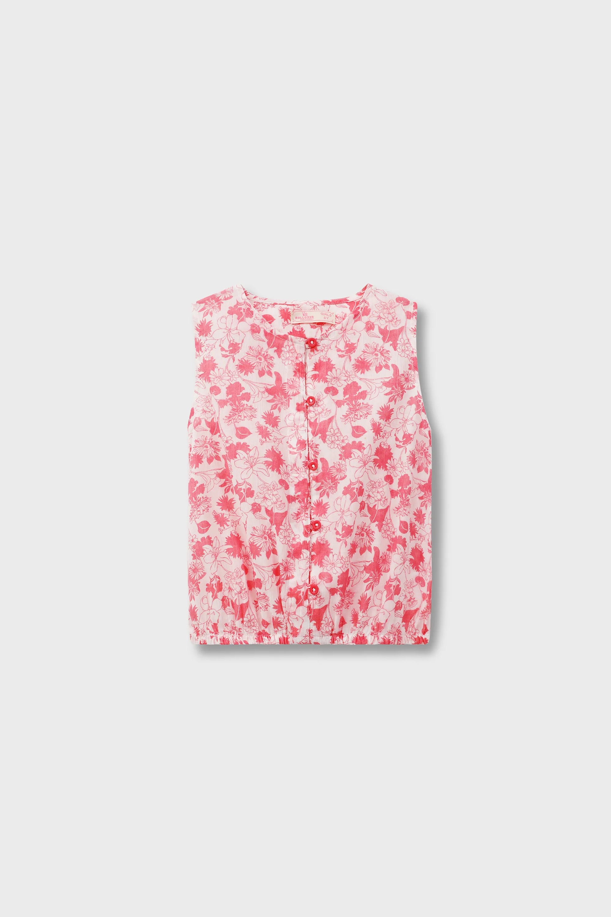 A sweet and comfortable sleeveless cotton top with a playful red floral design. The button-down front adds charm and convenience, while the elastcated hem ensures a snug yet airy feel. Perfect for the season, giving your girl a bright and refreshing look effortlessly.