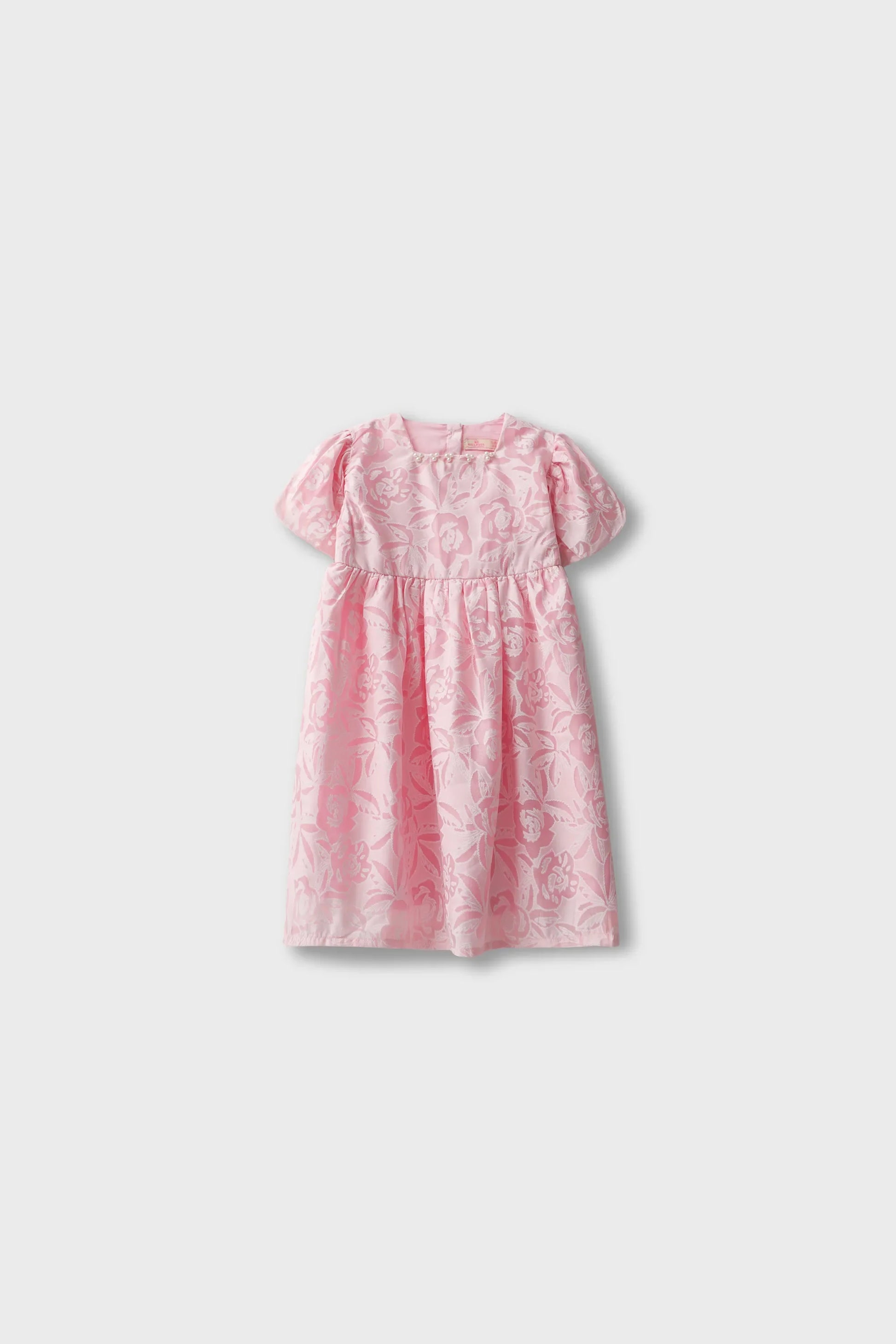 This girls dress is crafted from delicate fancy net fabric in a soft pink shade, featuring an elegant floral pattern throughout. The airy silhouette offers graceful movement and lightweight comfort, making it ideal for parties, celebrations, festive gatherings, birthdays, weddings, and special occasions where charm, style, and elegance are beautifully highlighted.