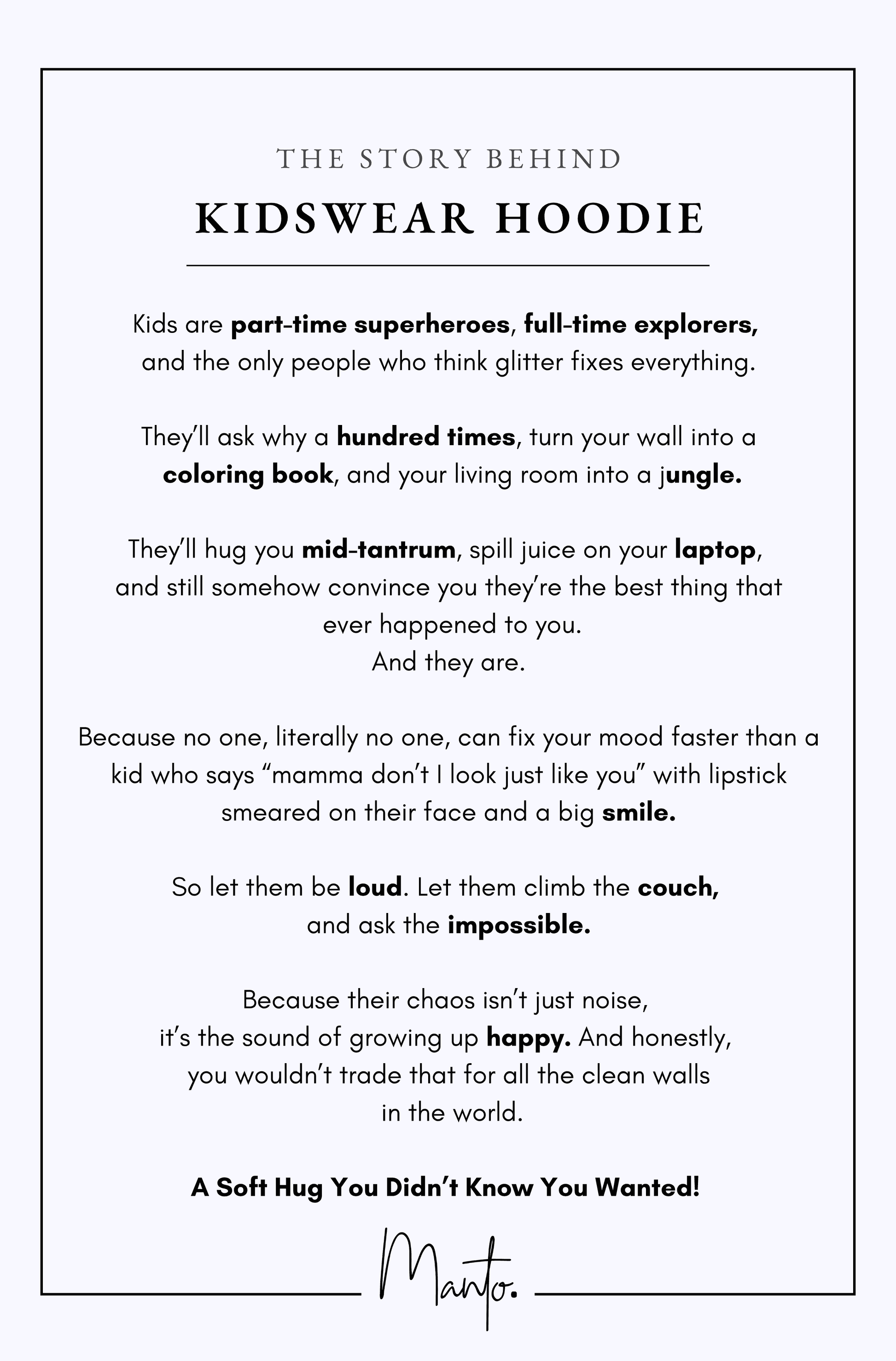 Manto Winter Hoodies are unisex and the road to your comfort revolution. Pick a size you feel the most comfortable in!