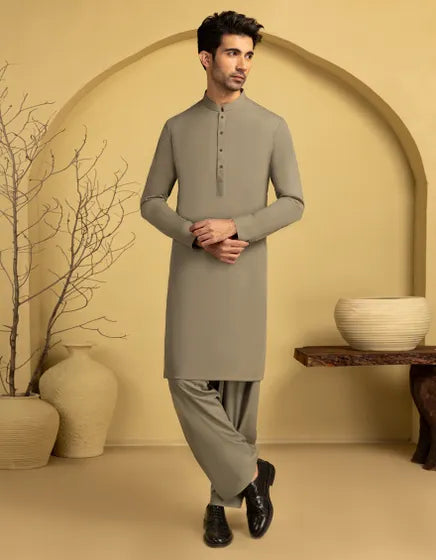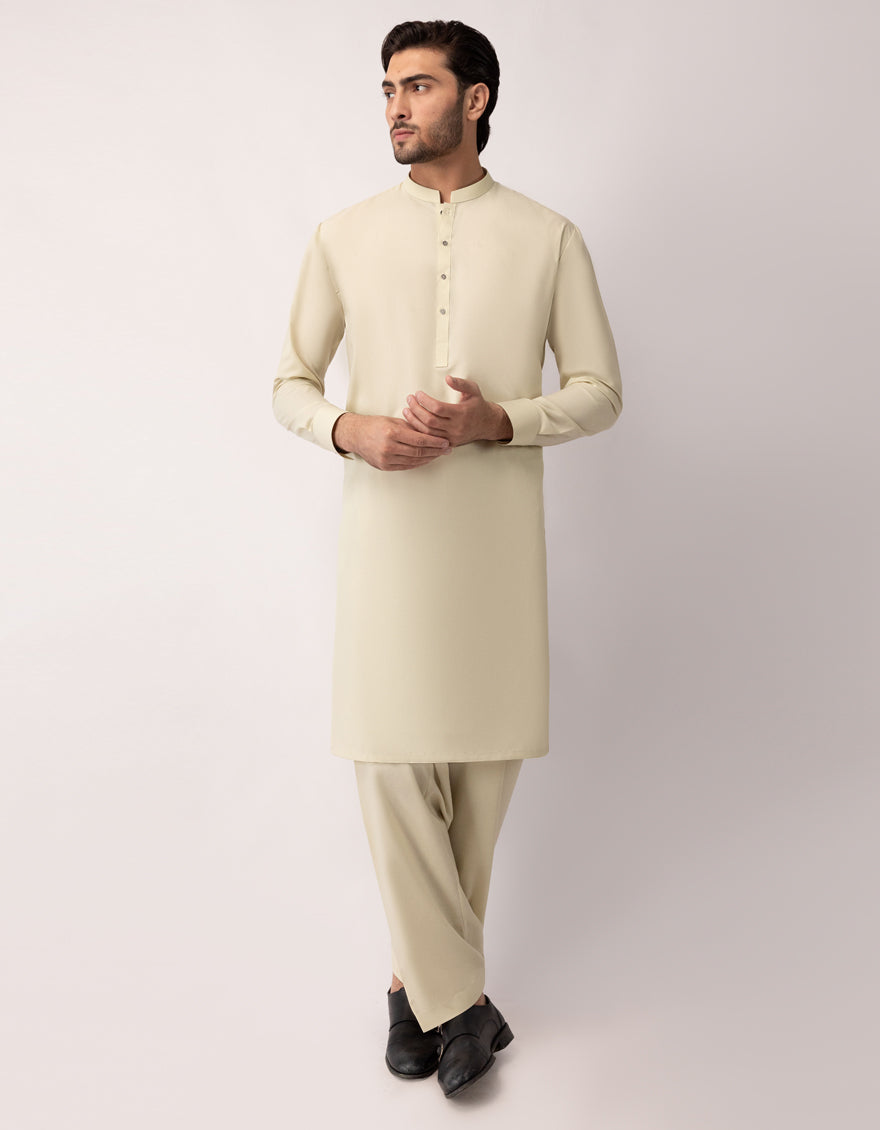 Cream Booski Ban Plain - Kameez Shalwar - Men