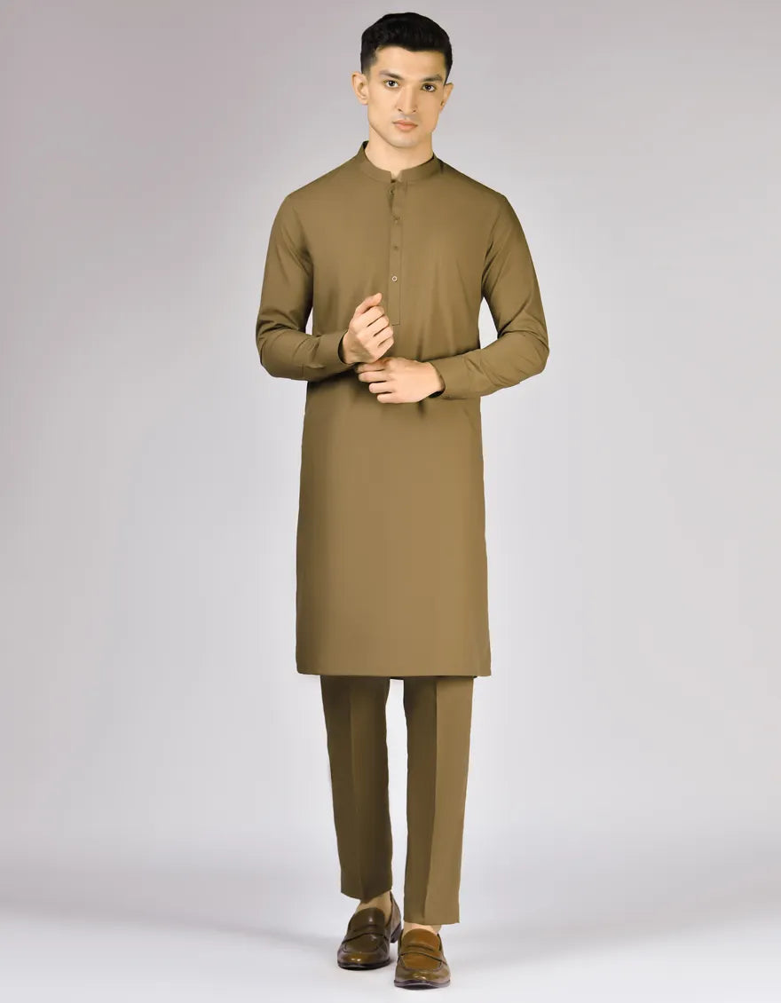 Antique Brown Unstitched Kameez Shalwar Fabric