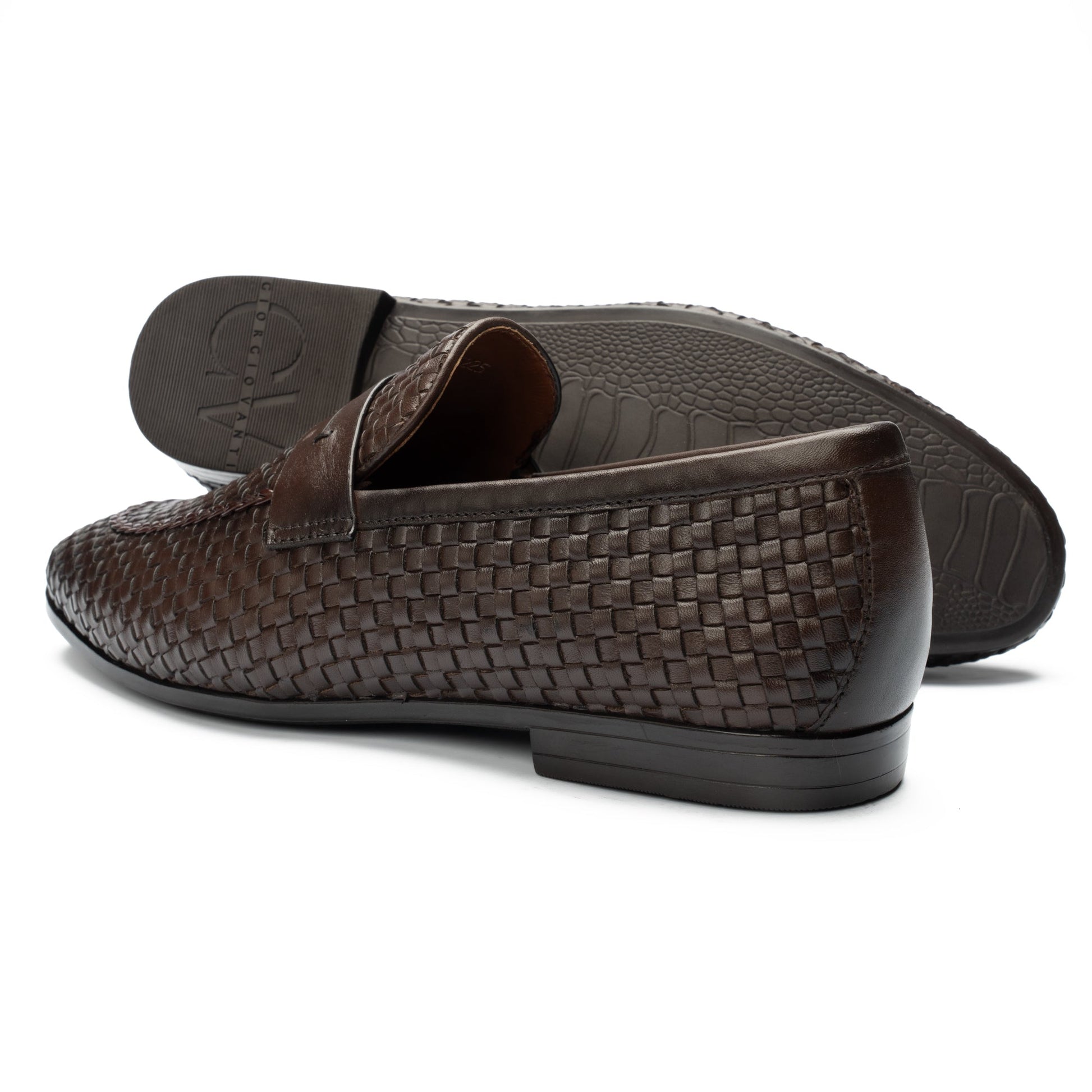 Hand-woven leather texture with a sleek penny strap for refined distinction.