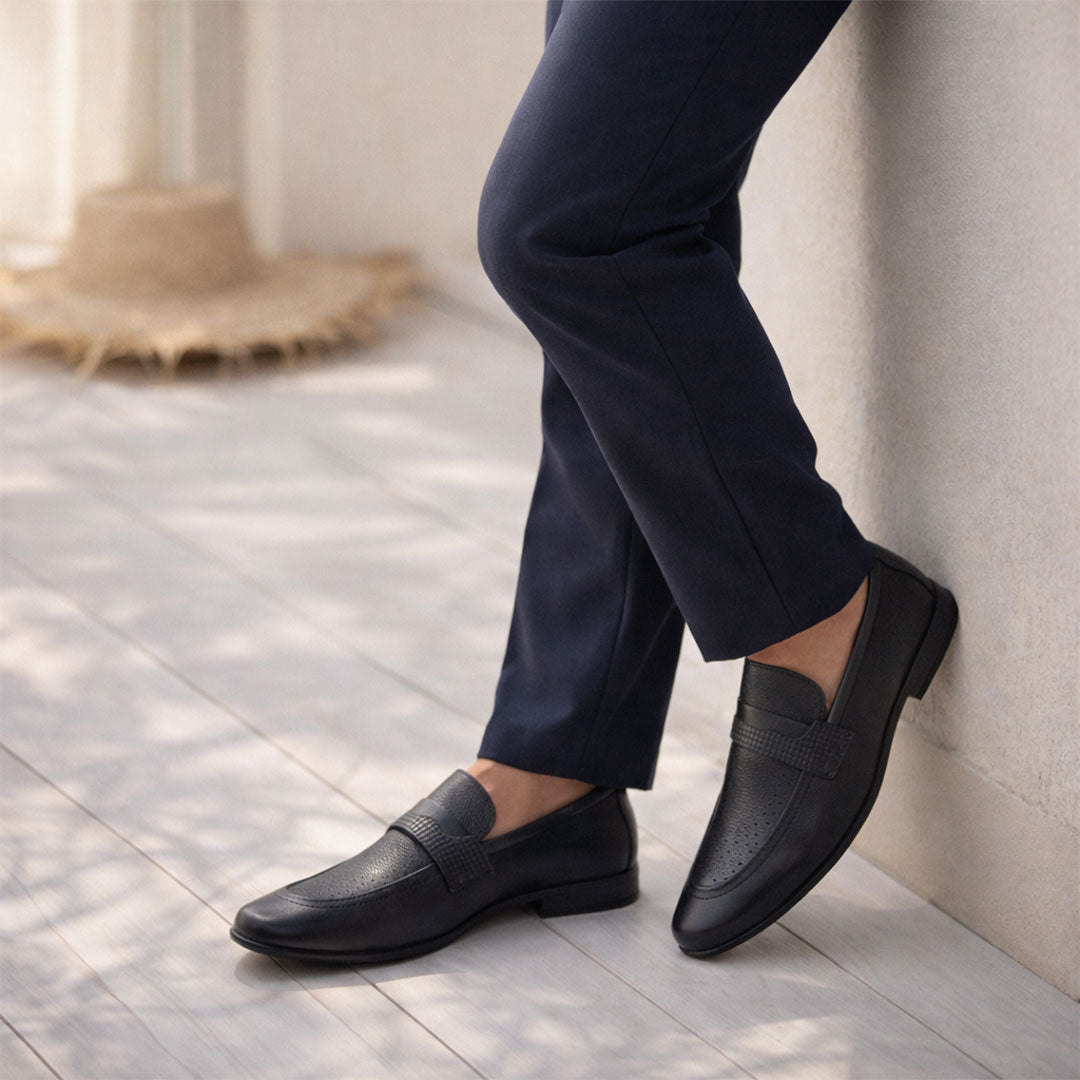 Elevate your style with the sleek and sophisticated look of these black leather formals.