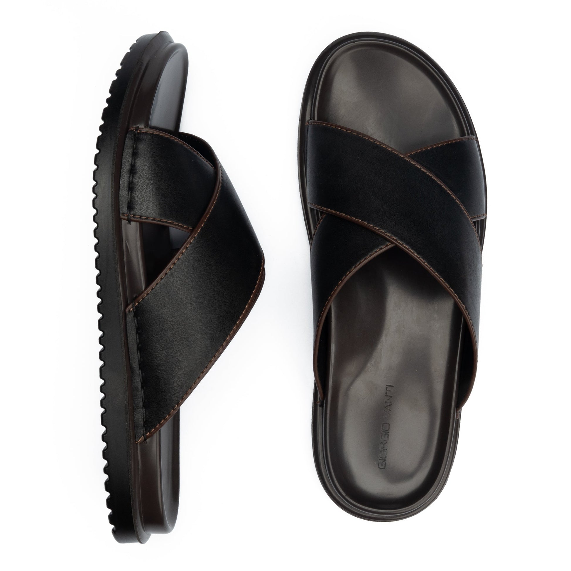 Crafted with sleek cross straps and smooth leather finish.
