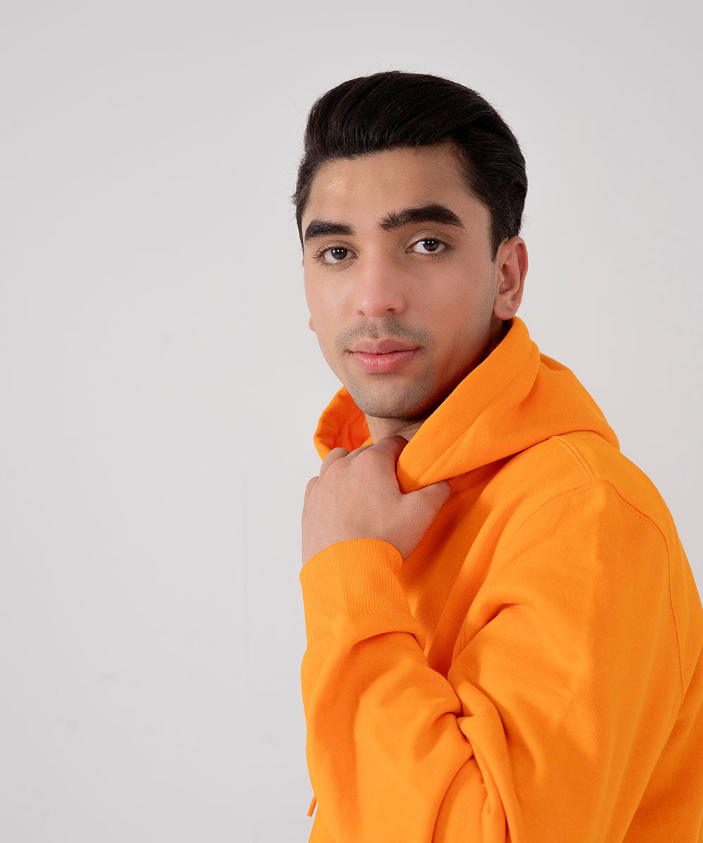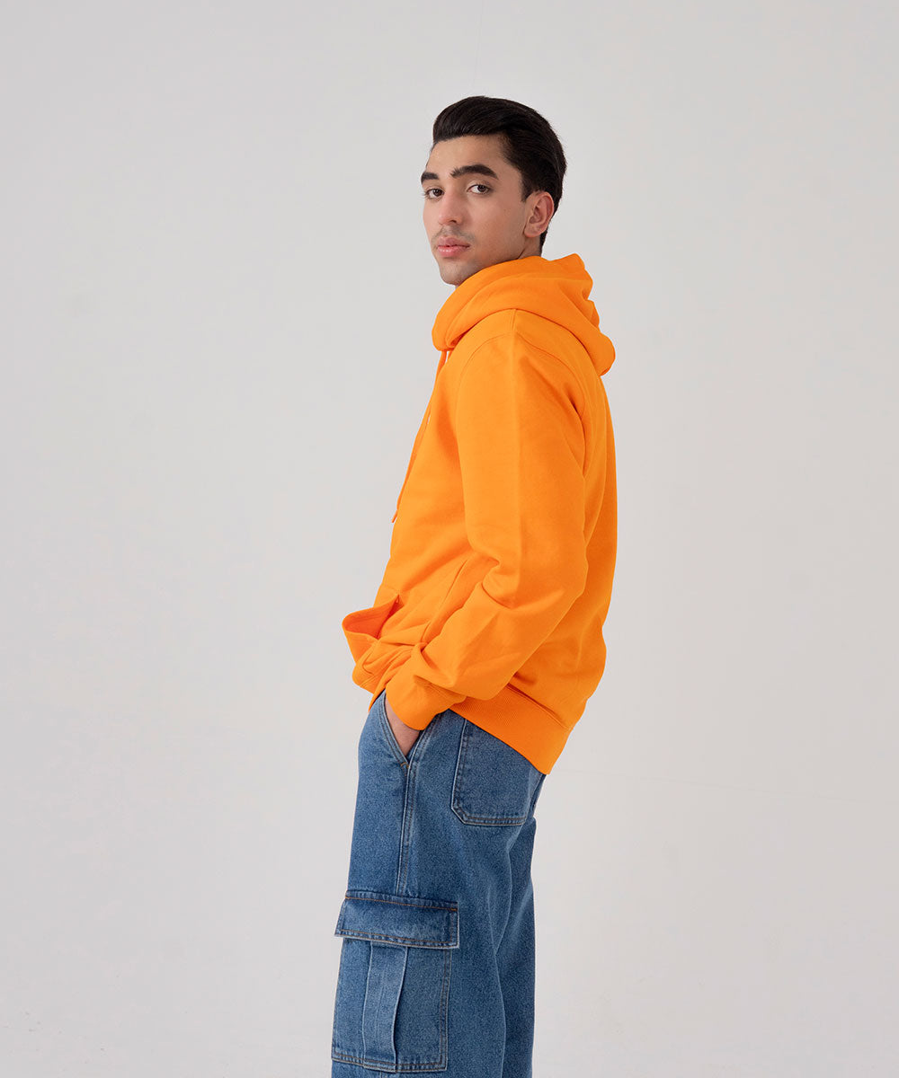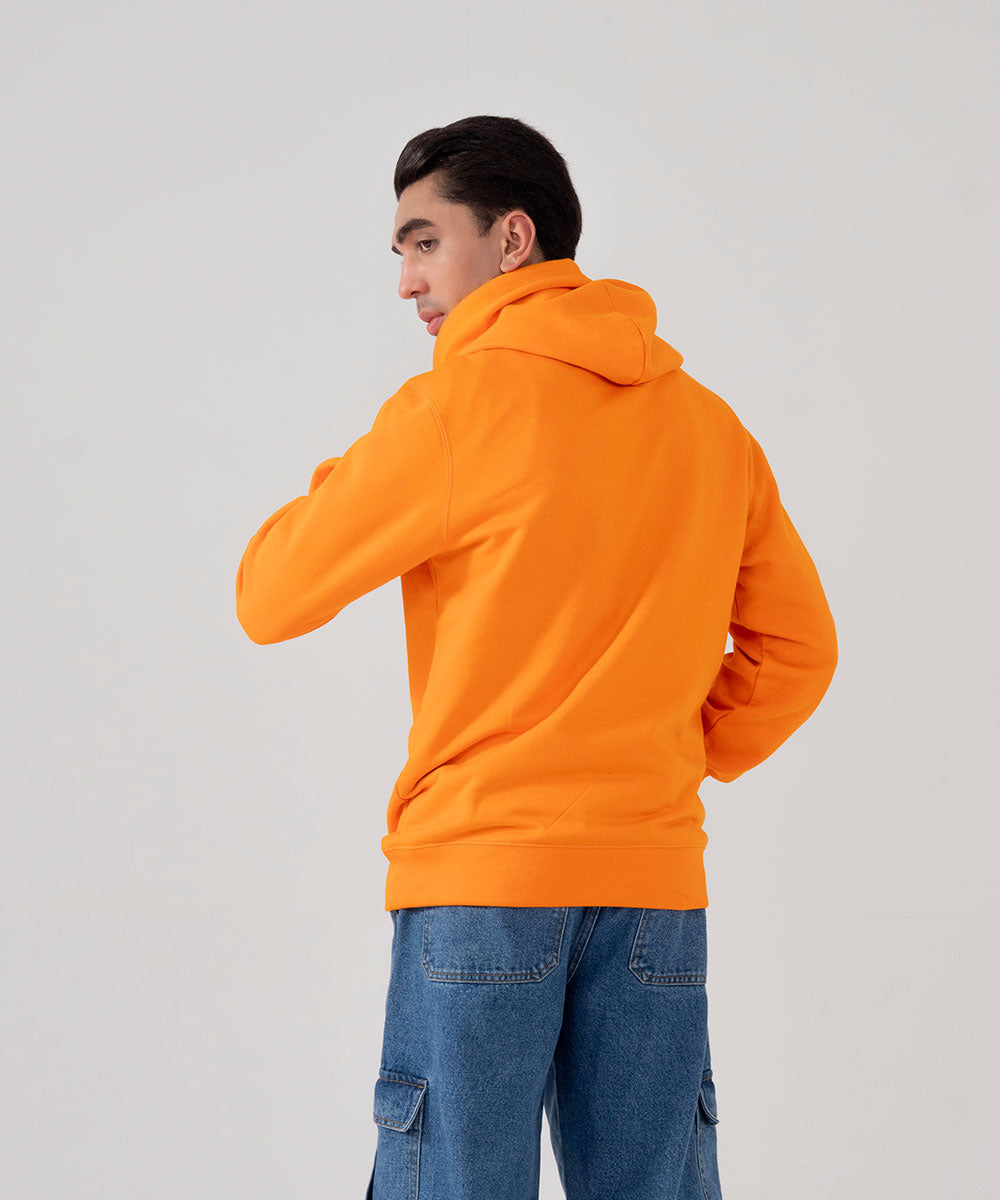 Design details: Vibrant orange hoodie in soft fleece, combining bold style with cozy, everyday comfort.