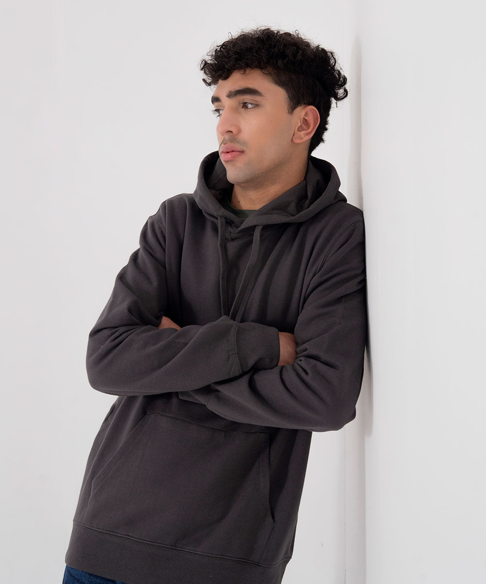 Design details: Classic charcoal pull over combining warmth, style, and modern edge.