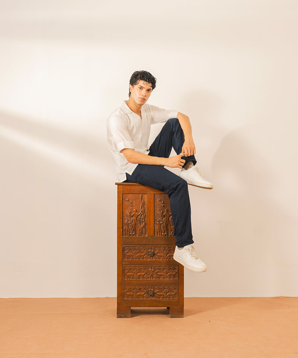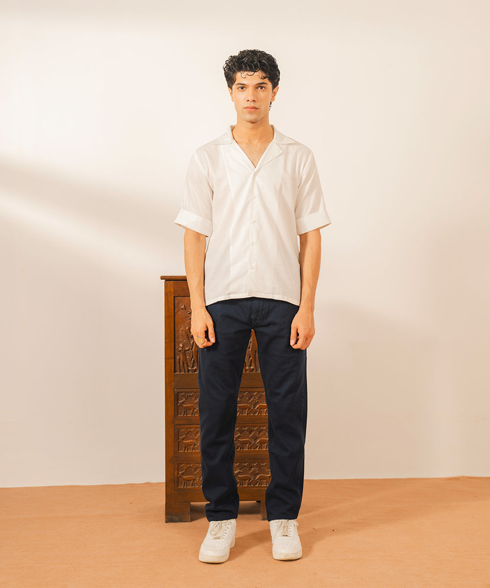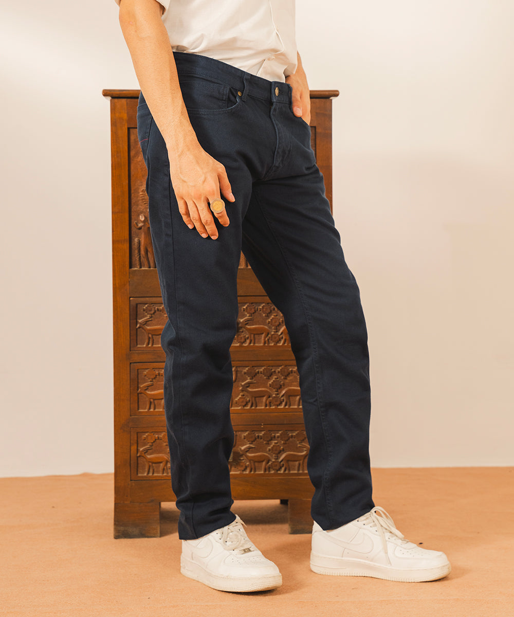 Design details: Timeless straight-fit navy denim jeans, perfect for a sleek and versatile look.