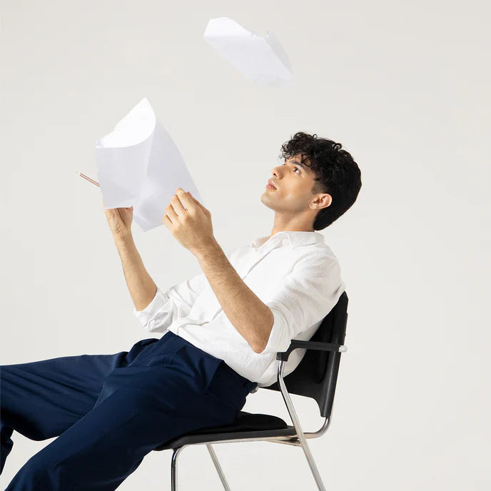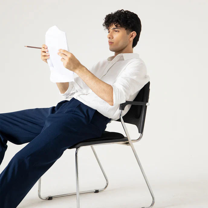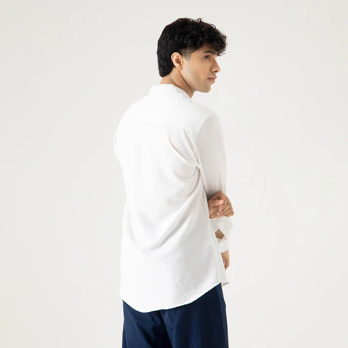 Textured collared button show shirt with double flap pockets at the front. Long sleeves with buttoned cuffs.