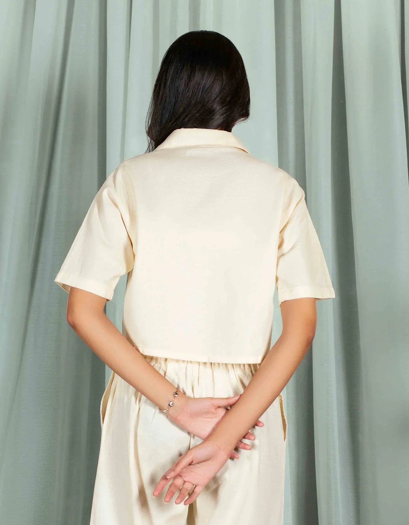 JACQUARD PANELED CROPPED SHIRT