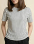 Regular fit classic striper crew neck tee. Self fabric at neck & sleeve. Short sleeves.