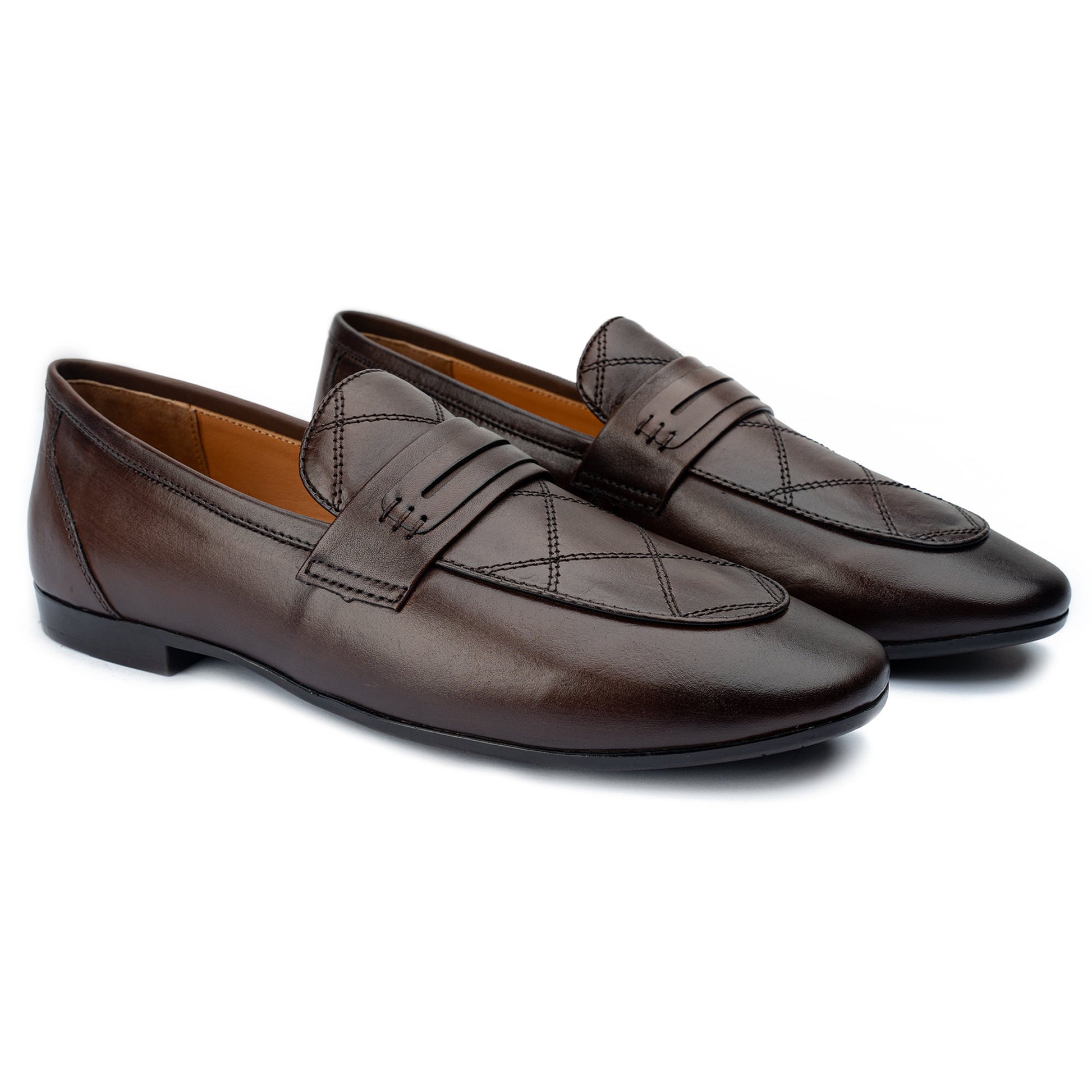Made from premium brown leather, this pair features elegant cross-stitch detailing for a refined look. Perfectly balancing classic charm with modern sophistication, it’s ideal for formal occasions.