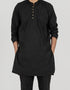 Men’s mandarin collar full sleeves, long length kurta with self front Panel and buttons detailing.