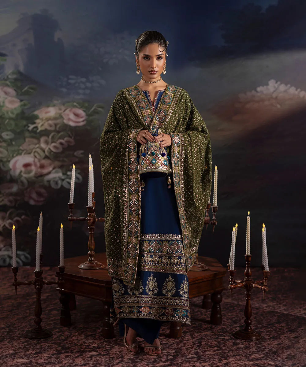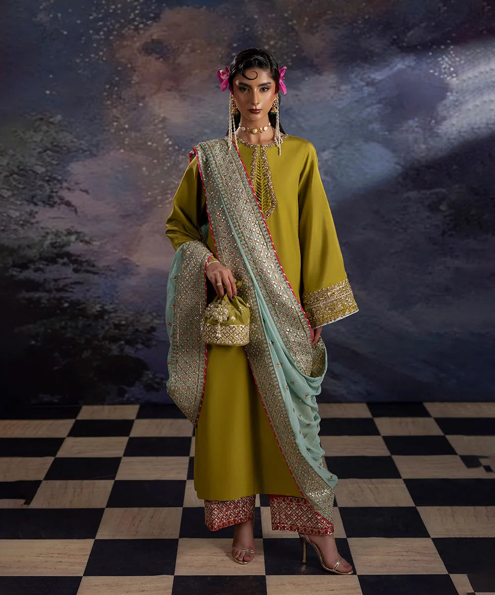Gulzar – 3Pcs Hand-Embellished Korean Rawsilk Ensemble