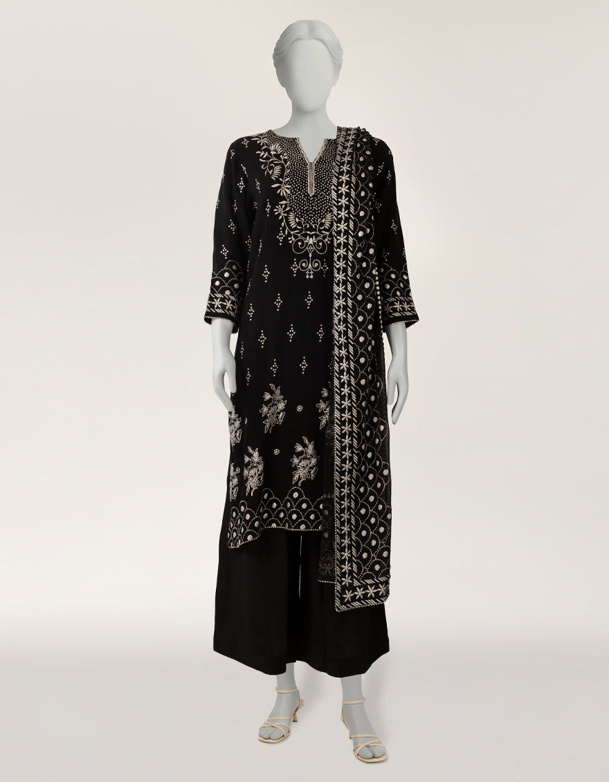Moonfell – 3Pcs Hand-Embellished Raw Silk Ensemble