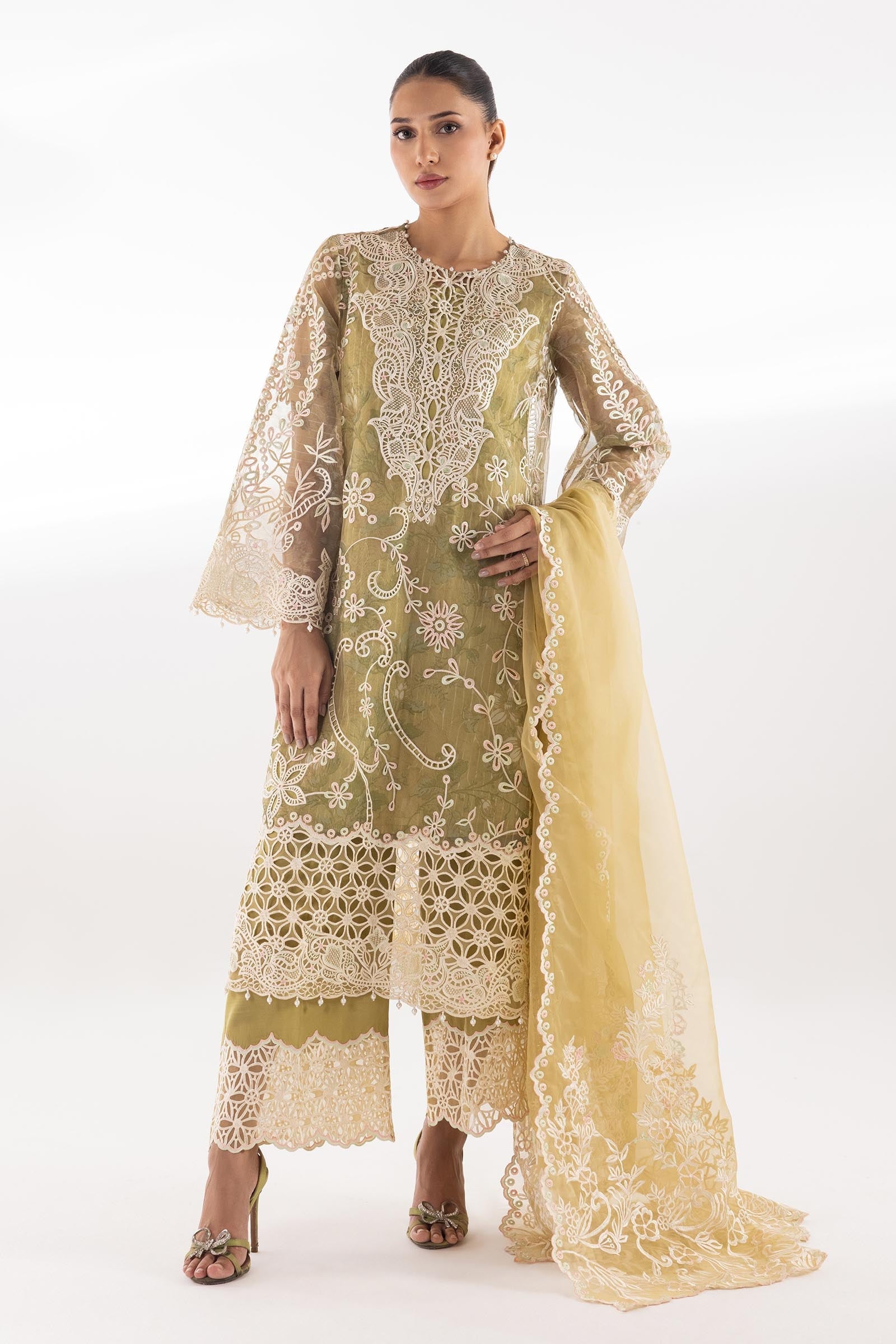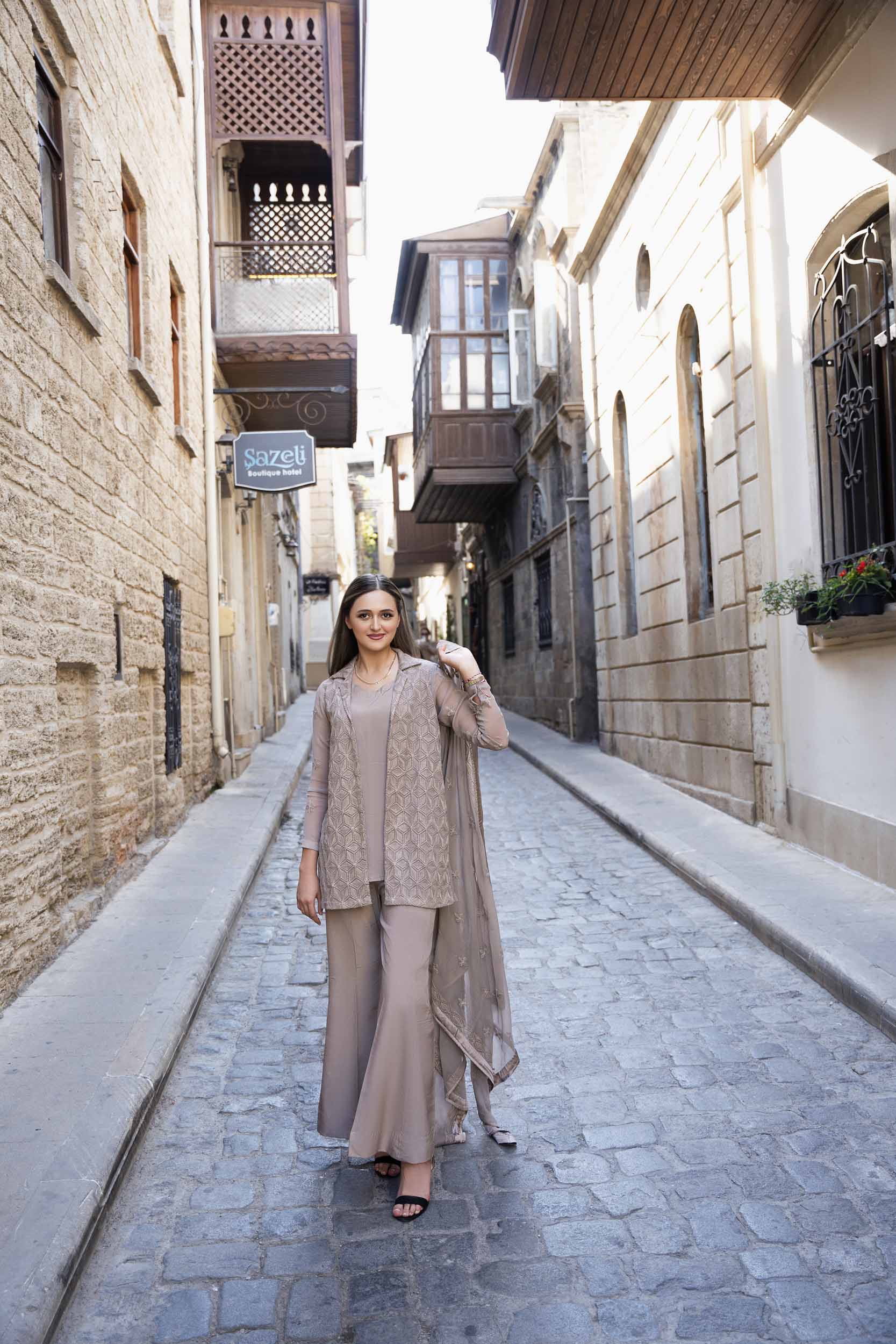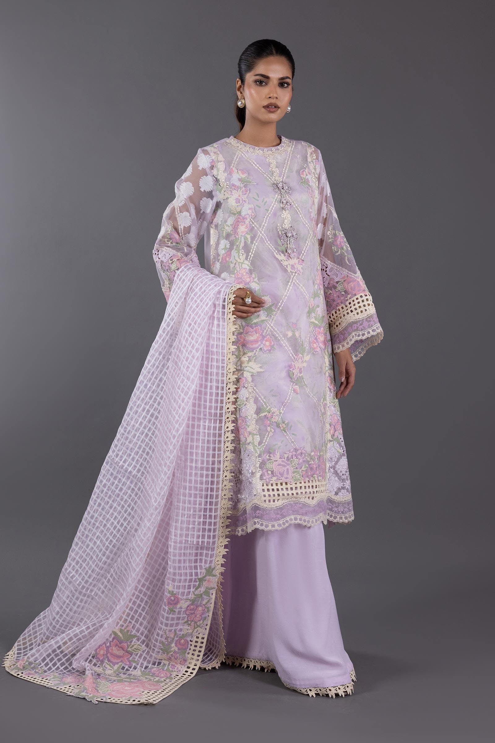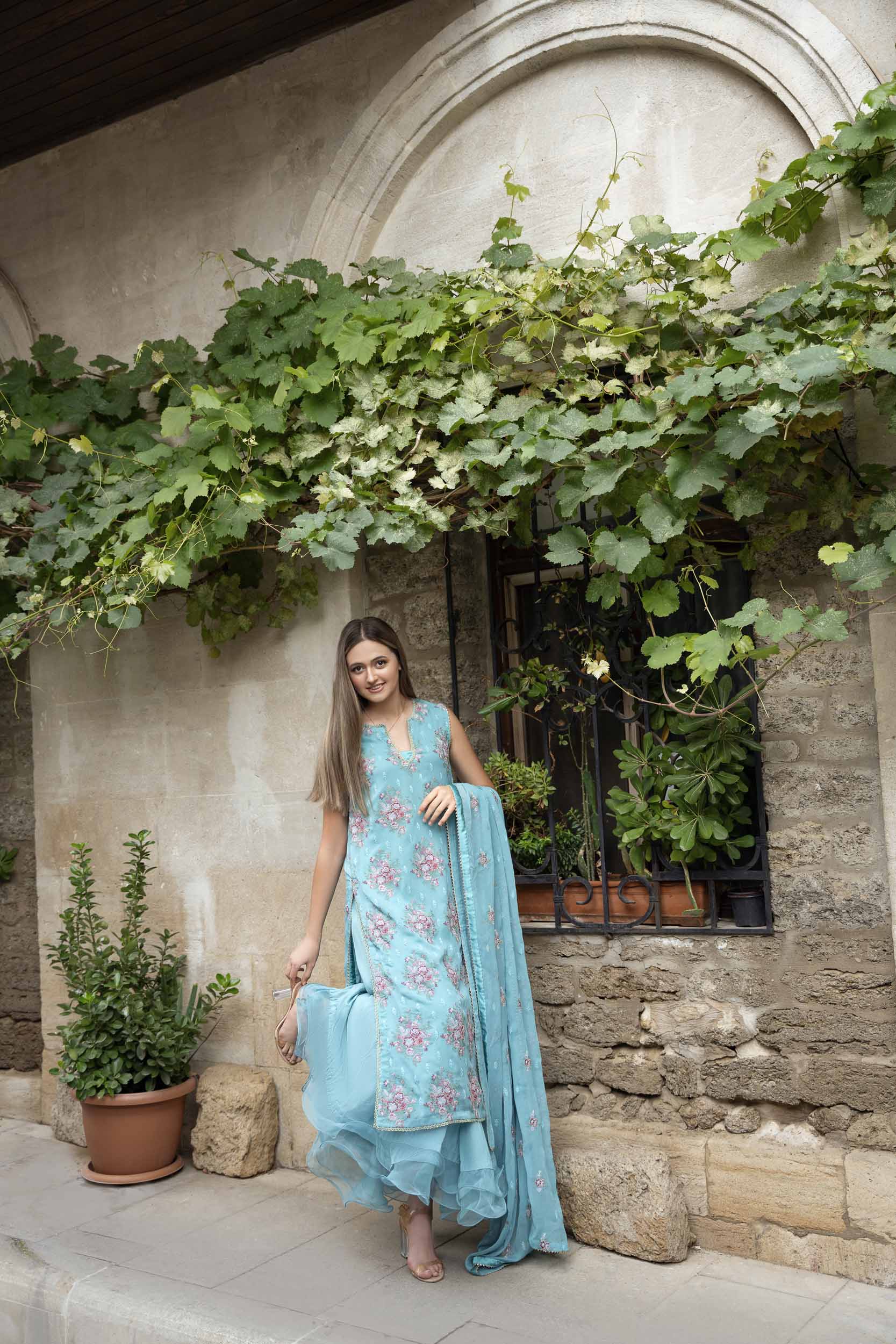 Stitched Organza Embroidered Shirt + Plazo + Dupatta