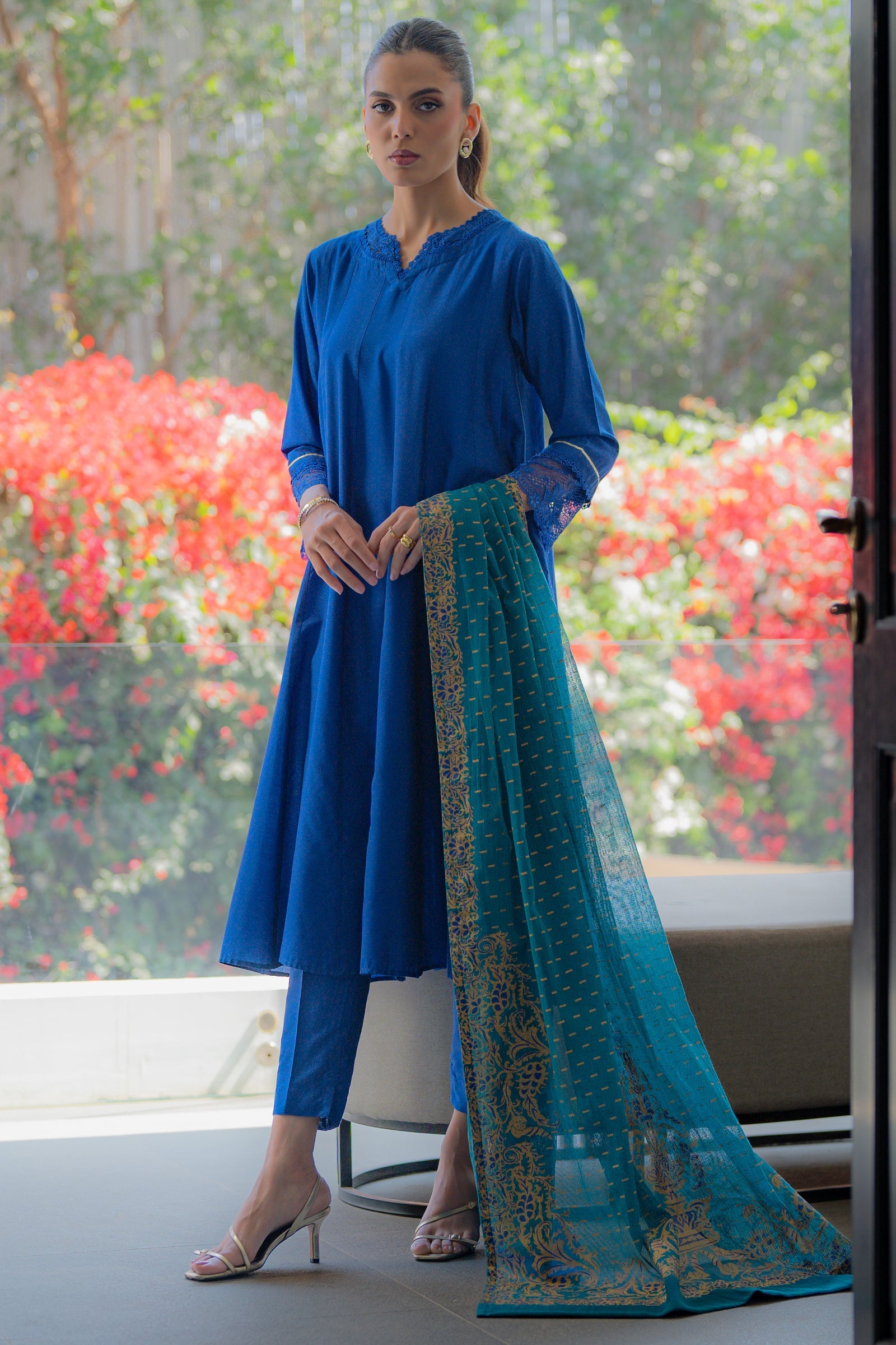 BLUE MAPLE SILK DYED STITCHED 3PC