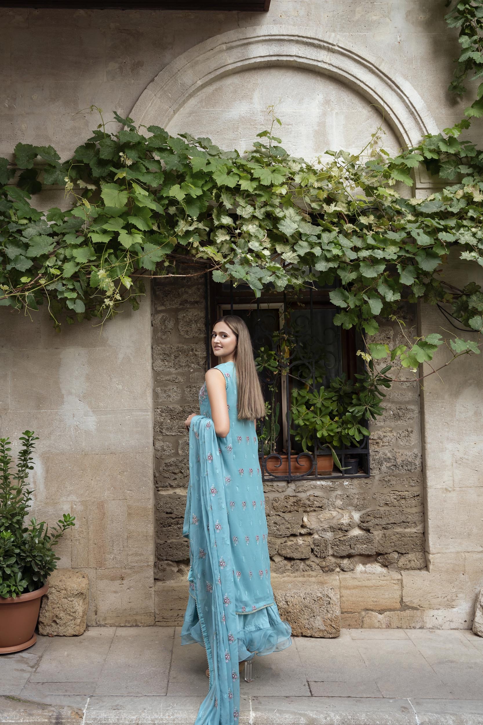 -Embroidered Crinkle Dupatta