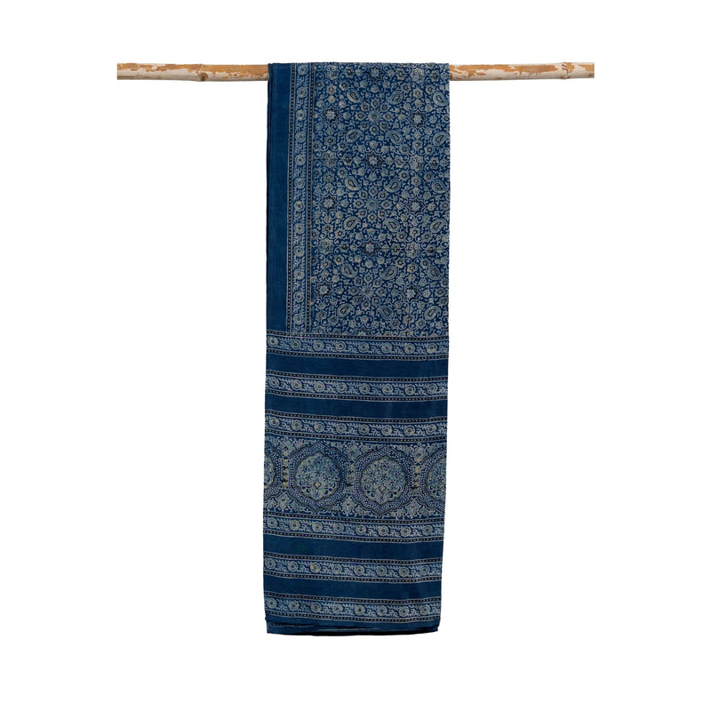 Natural Dyed Silk Ajrak Scarf - Indigo & Grey
