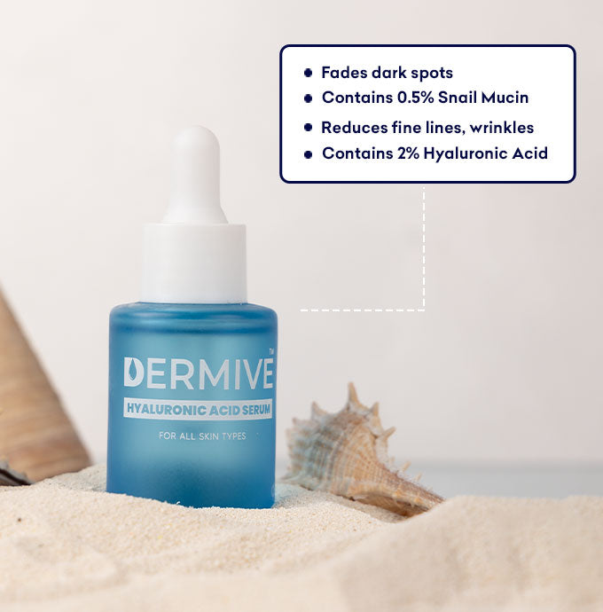 Infused with Snail Mucin, Hyaluronic acid, Ceramides and Alpha Arbutin, Dermive hydrating Serum repairs your skin barriers and hydrates it like never before!