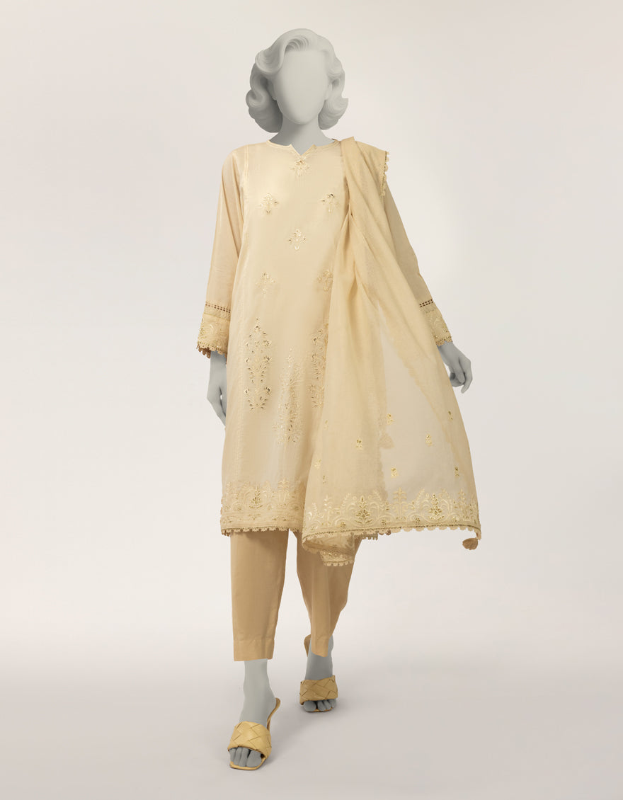 OFF WHITE LAWN SILK SCHIFFLI STITCHED 3PC