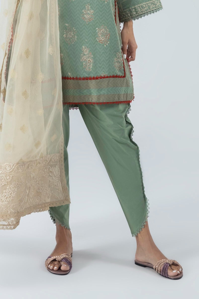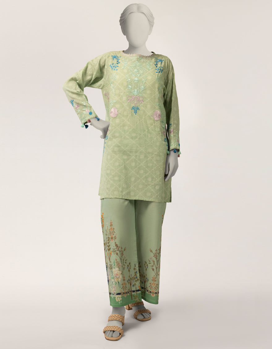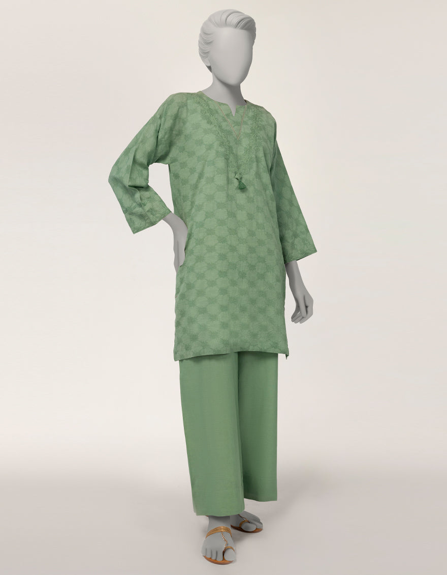 Green Dobby Embroidered Co-Ord Set