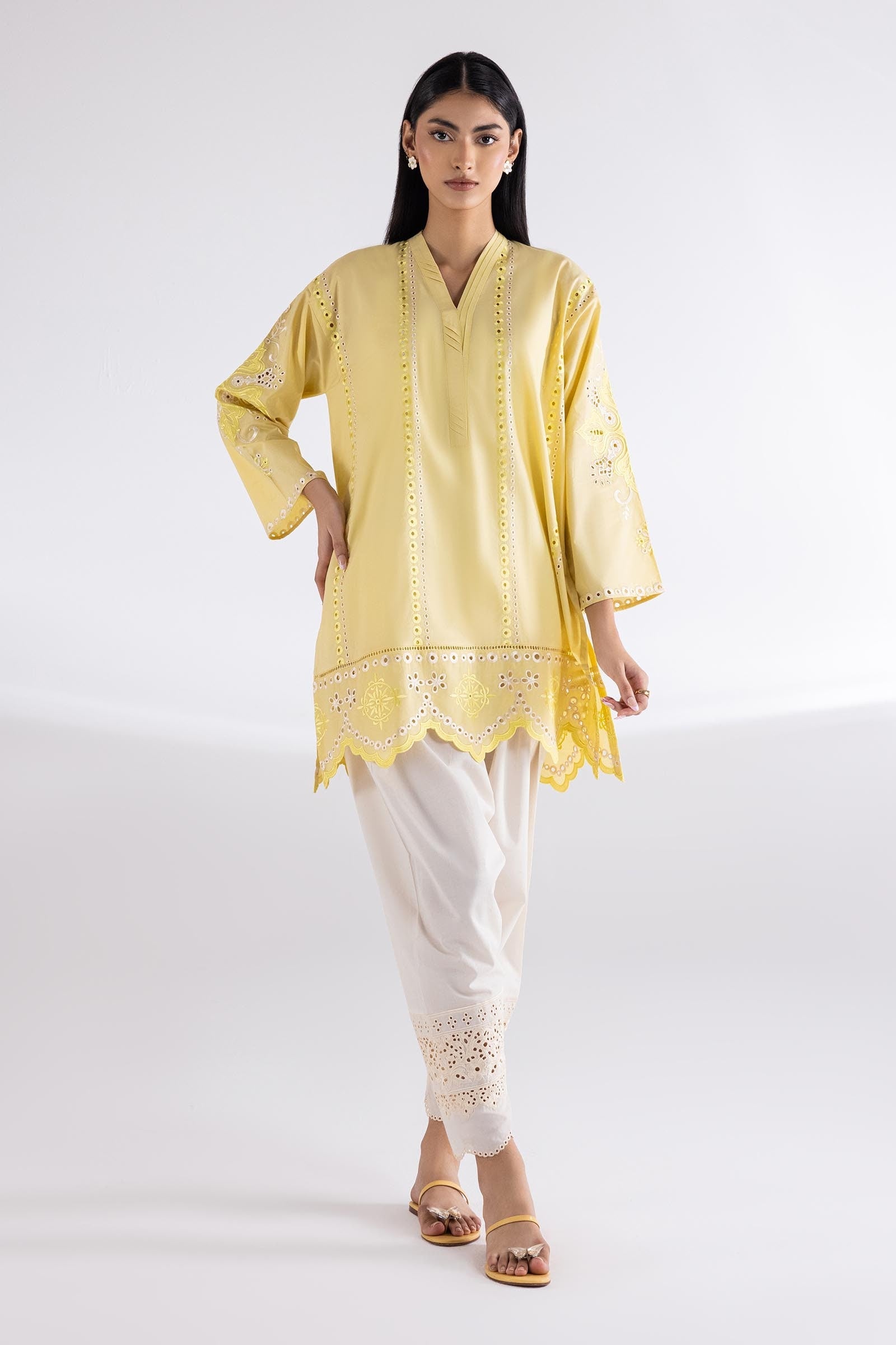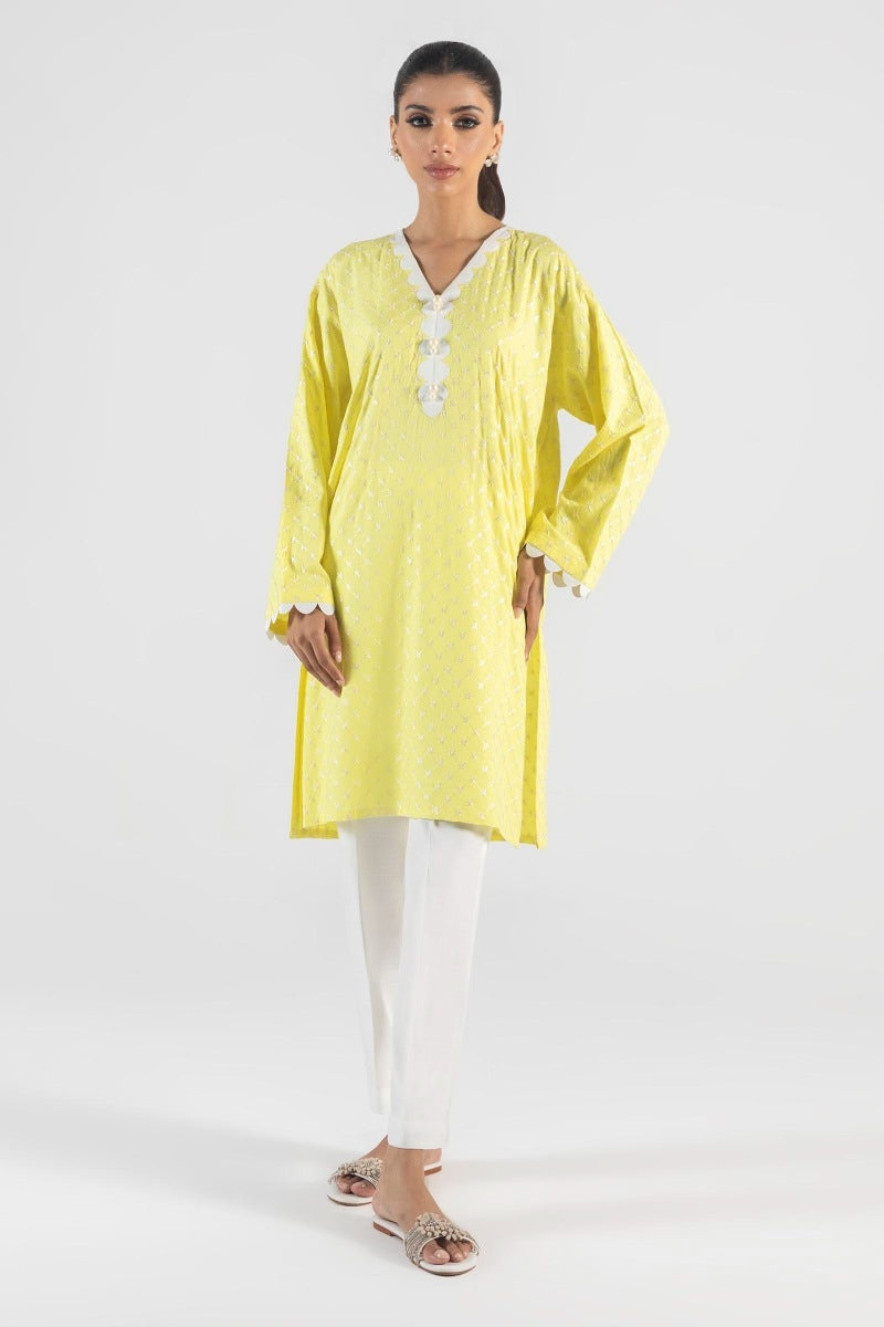 Yellow Dobby Embroidered Co-Ord Set