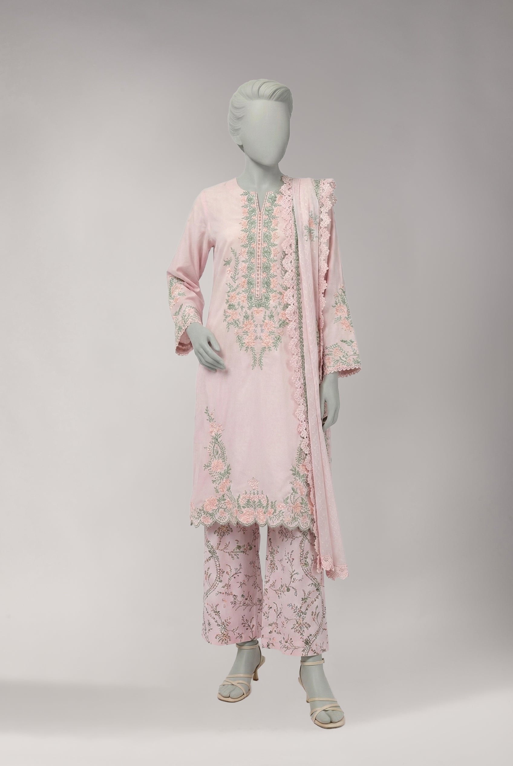 PINK LAWN EMBROIDERED STITCHED 3PC