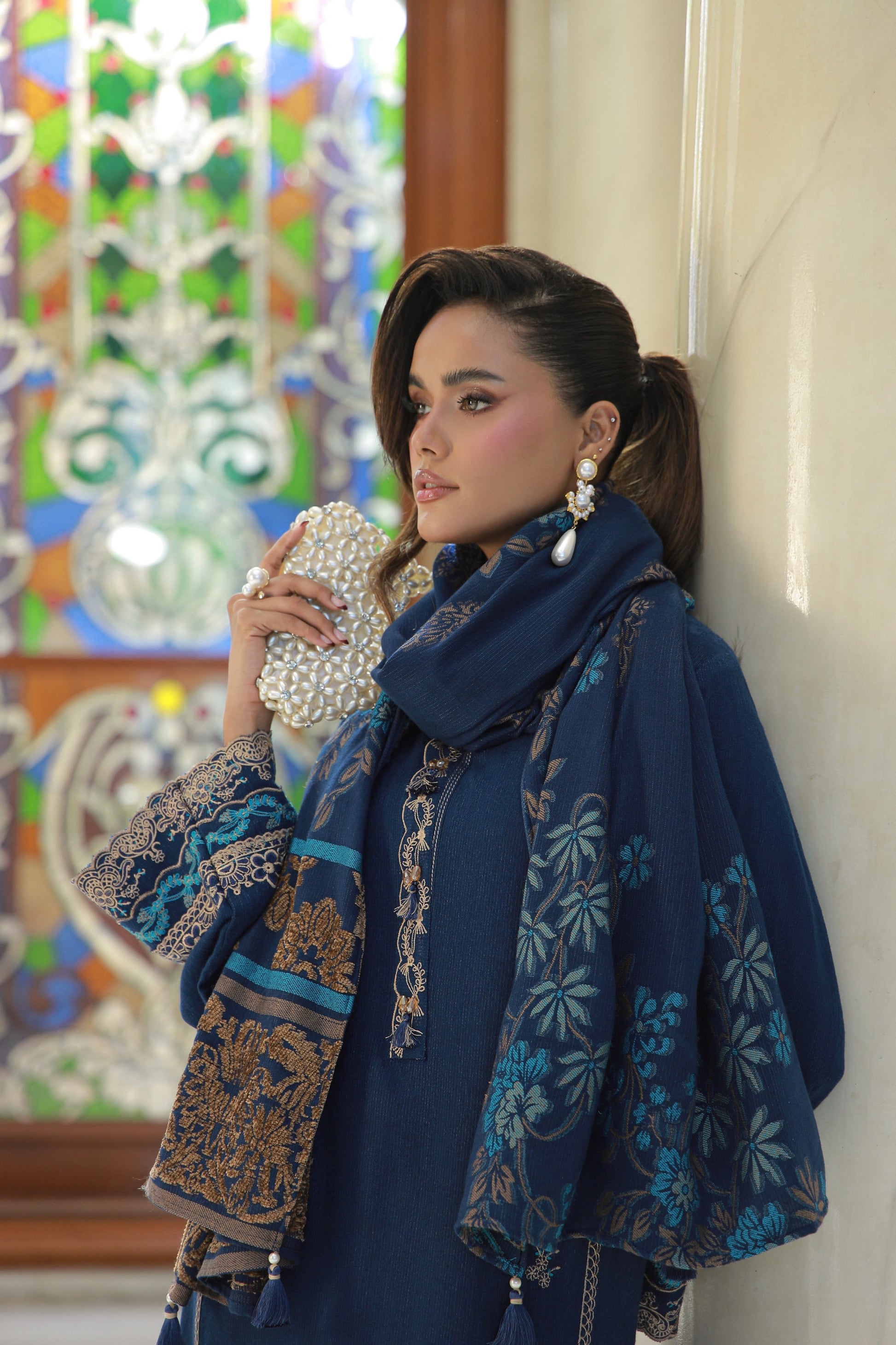 03 Piece Unstitched Embroidered Fancy Jacquard Peach With Velvet