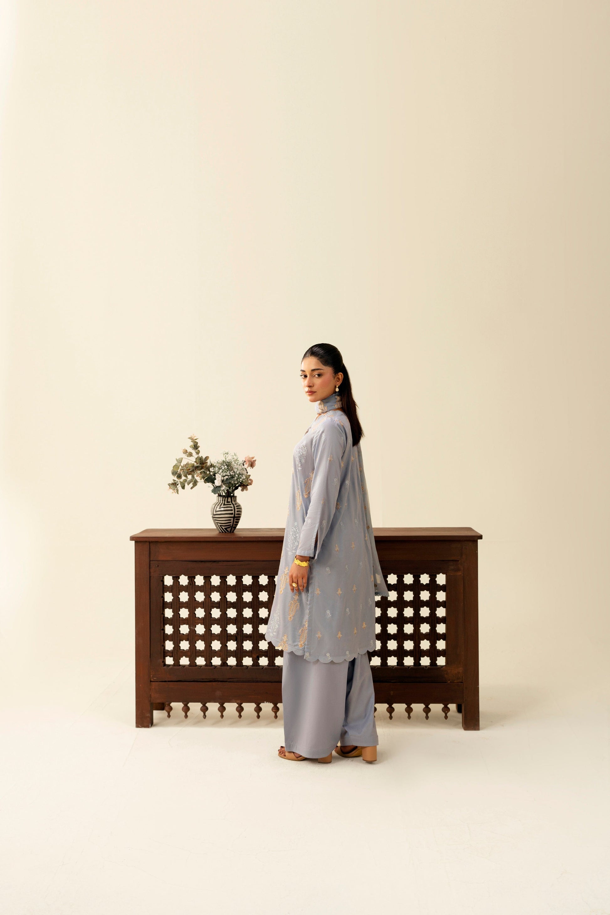 -Embroidered Pure Bamber Crinkle Duppatta