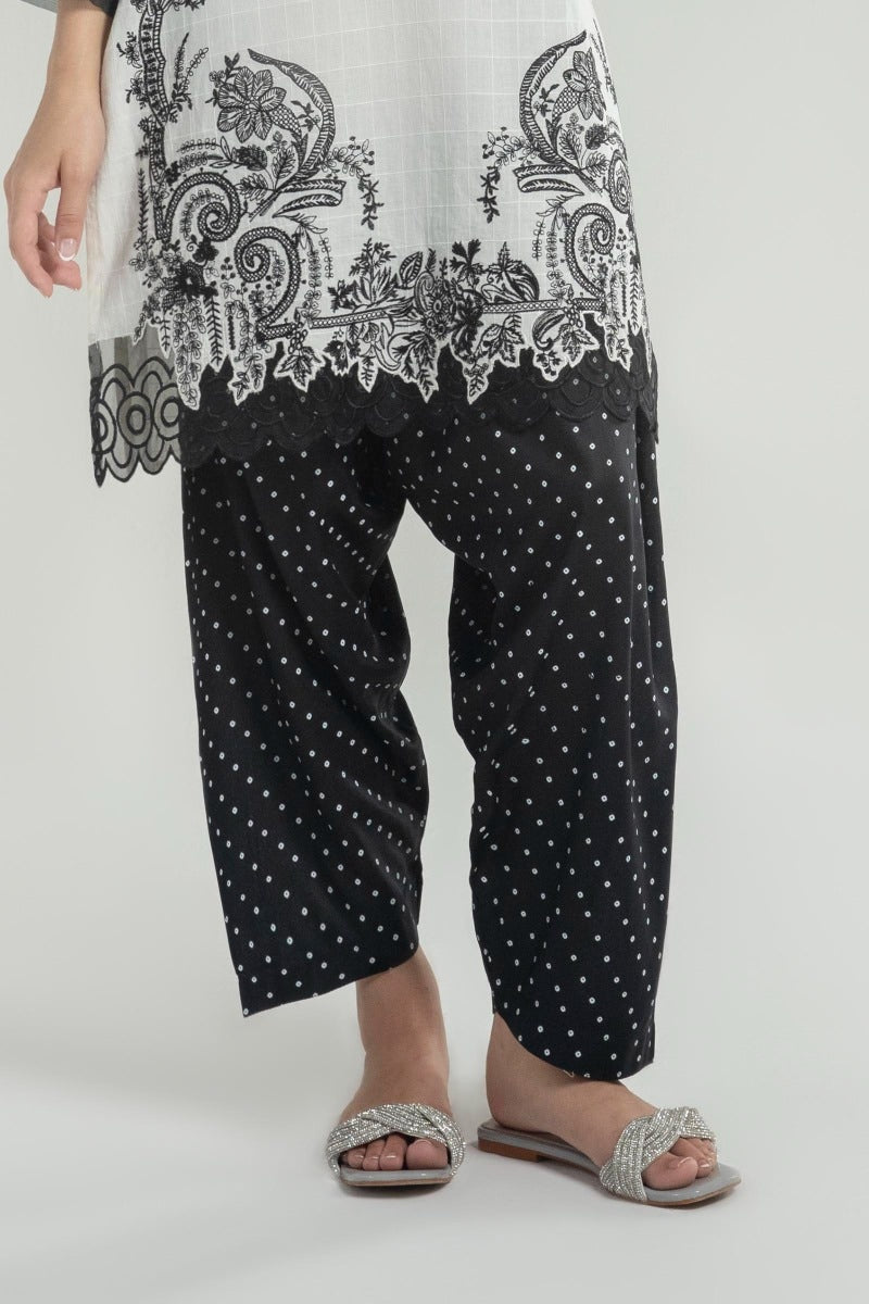 Description: This black colored shalwar with white polka dots is comfy and stylish!