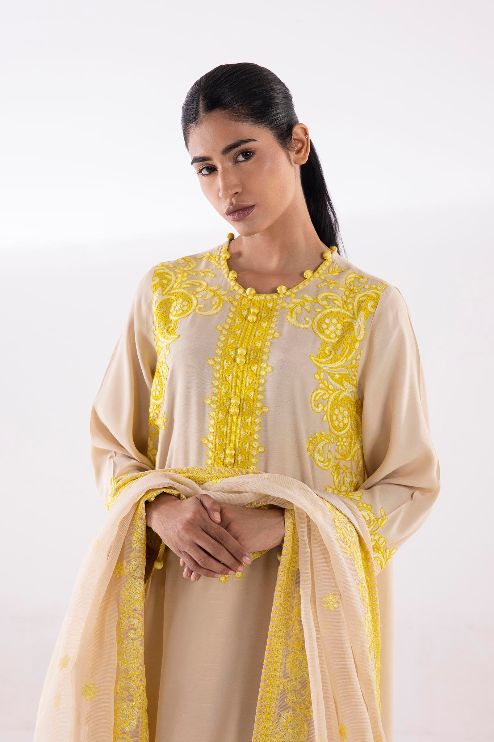 Dupatta: Cotton Net Beige Dupatta Included
