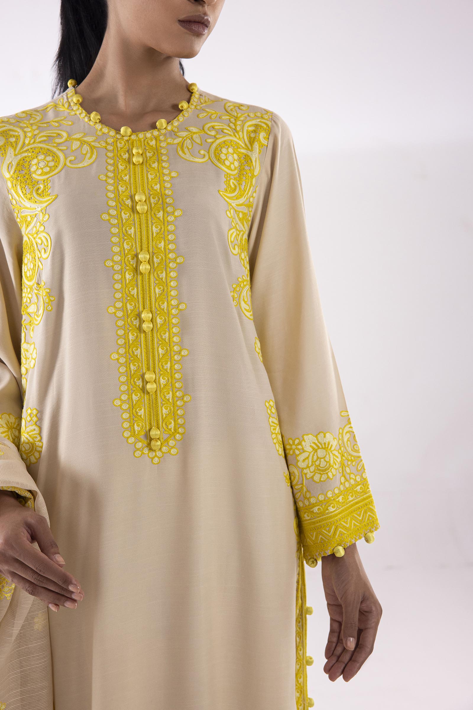 Stitched Embroidered Raw Silk Suit